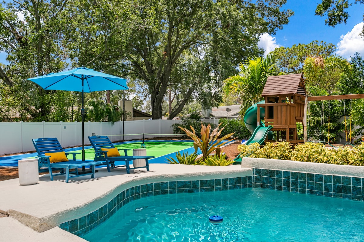 Welcome to our Lite Brite Beach Escape! No matter your age or interest, we have something for everyone! Heated & cooled pool ⭐ Mini-golf ⭐Lite Brite wall⭐Outdoor movie theater⭐ Pong⭐Bikes ⭐Beach gear ⭐Games ⭐Slide & playhouse We invite you to explore your creative and fun side while experiencing the beauty and wonders of Florida on the Gulf Coast! We provide a long list of basic amenities so your stay is seamless and stress-free. Just pack your personal belongings and we have the rest covered!