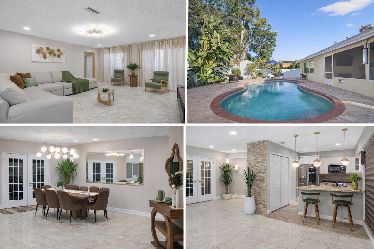 Welcome to The T and C Club! A featured home for the Make-A-Wish Foundation. Located 6 miles from the Tampa Airport, 7 miles from Raymond James Stadium and only 15 miles from award winning Clearwater Beach, this home is convenient as it gets. Completely refurbished, there is plenty of space to sleep 10 individuals comfortably, dining table for 10, a large resort-like backyard, saltwater pool, propane grill and all the fun you can imagine. This will truly be a case of you won’t want to leave!
