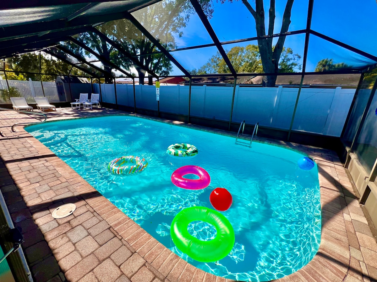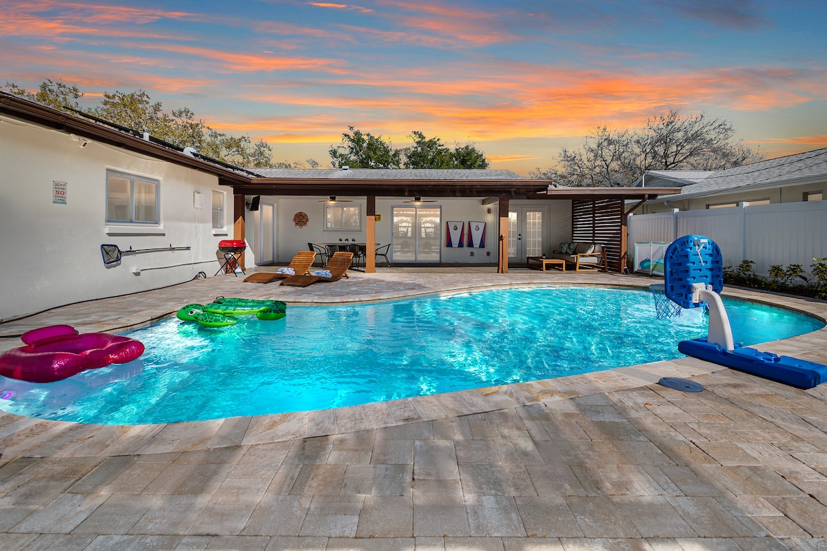 -9FT DEEP *HEATED* SALTWATER POOL ($25 / day) AT 85 DEGREES UPON REQUEST -COMMERCIAL ARCADE WITH >4500 GAMES 4 PLAYERS! -NBA JAM, GOLDEN TEE, THE SIMPSONS, NFL BLITZ, MUCH MORE! -MASTER KING BEDROOM -FULLY FENCED BACKYARD -OUTDOOR FIRE PIT -WEBER GRILL (Kamado Joe Smoker broke) Stay comfortably in this quiet, 4/3 pool home, with a commercial family arcade! Enjoy a staycation at this tastefully updated home or take a quick ride to one of the many local Tampa area attractions!