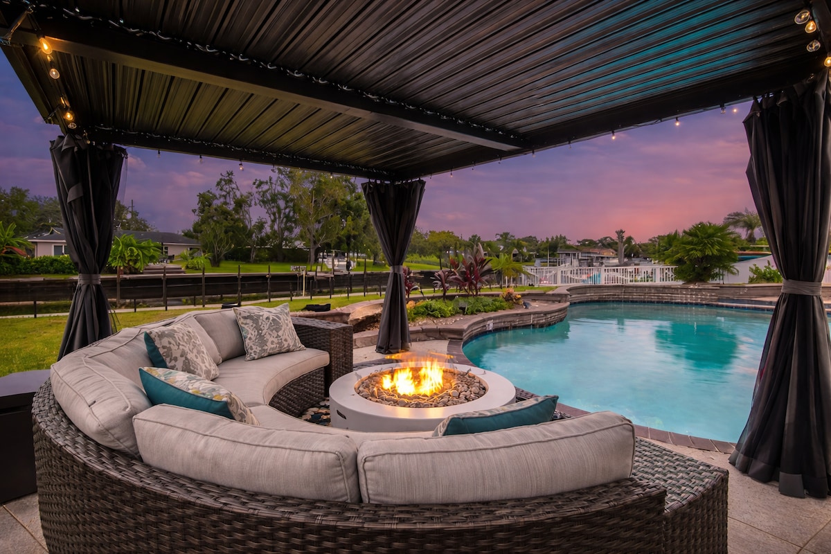 坦帕海滨温水泳池/热水浴缸绿洲,带码头