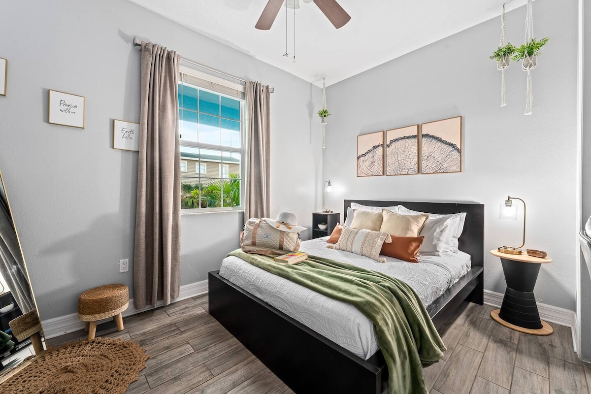 Beautiful historic bungalow located in the heart of Tampa, close to everything the city has to offer. Featuring a rustic boho design, our home provides a relaxing retreat just 5 minutes from Downtown Tampa. Enjoy the convenience of free parking and easy self check-in, along with a fully stocked kitchen, SMART TVs, and a laundry room. The bohemian atmosphere makes it ideal for vacations, romantic getaways, family visits, concerts, sporting events, or work trips.
