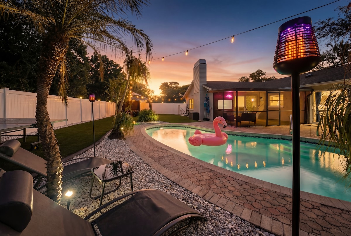 泳池边的绿洲 | 运河 | 距坦帕国际机场(TPA)5分钟车程 | 可住12人