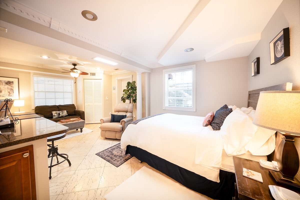 Enjoy this stylish and specail studio located in the most desired area of Tampa!! Walk or bike to Armature Works, The River Walk, Downtown Tampa, Ulele Restaurant and so many more cool and trendy places in the area. This studio is located less than 5 mins from our unique ans historic Ybor City! We are just 10 mins from Tampa International Airport so convenient for business trips. Pool area is available from 9 Am to 9 Pm No glass in pool area.