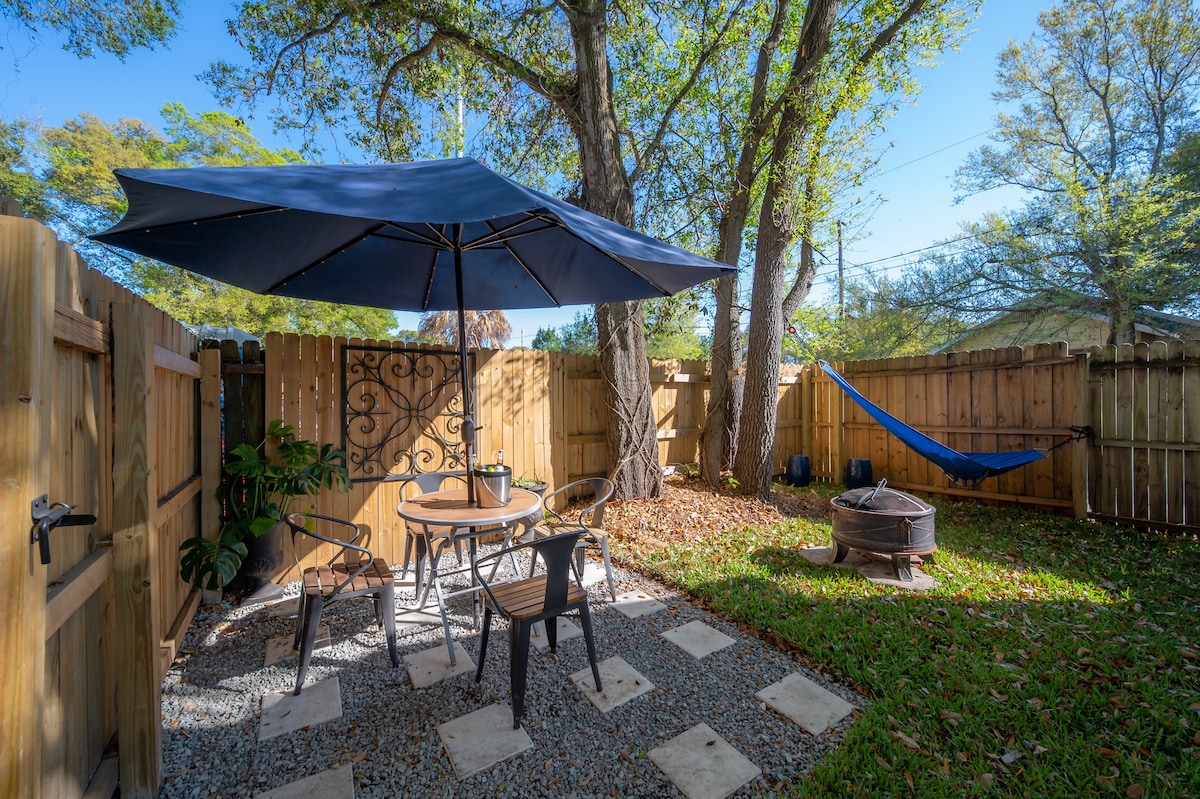 In the quaint historic neighborhood of Seminole Heights a tropical setting awaits you...This coastal cottage style getaway in Tampa, FL includes everything you'll need for a weekend getaway, including a queen sized bed, fully equipped and stocked kitchen, full bathroom with tub/shower combo, stackable washer/dryer, Iron, ironing board, and hair dryer. Grill your dinner and enjoy our Florida weather outside in your own private courtyard patio outside the cottage.
