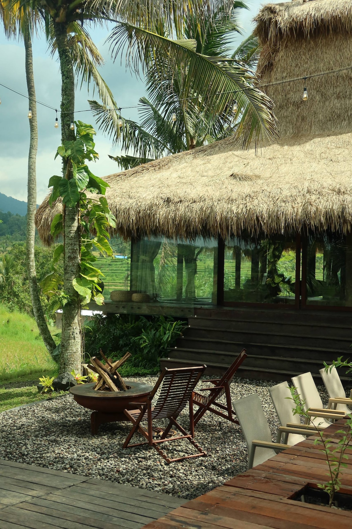 Brand new beachfront one bedroom teak tiny house, breathtaking ocean and ricefield views. Nestled on a beachfront hillside amid lush tropical gardens, this luxury tiny house is a true oasis of Zen. The unique design is built entirely from recycled materials, offering all the comforts of home. The air-conditioned living area is furnished with luxurious furniture and opens up to a huge deck with a hot tub jacuzzi, perfect for relaxing and taking in the stunning views.