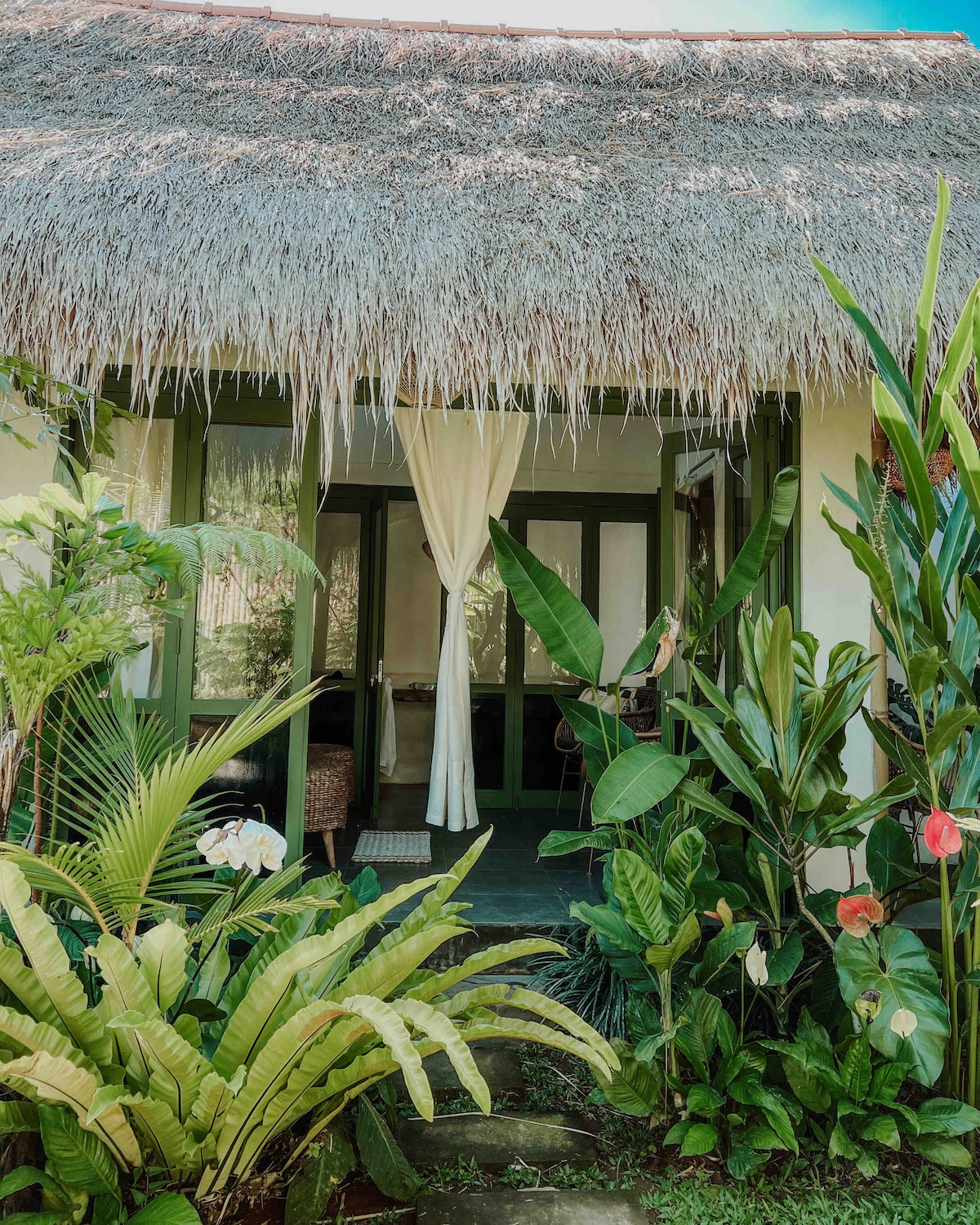 At Pondok Prapen, you will experience Bali at its most authentic and enchanting-nestled in the heart of lush tropical nature. Our villa is thoughtfully designed to harmonize with its natural surroundings, inviting you to unwind in an open, peaceful space where the sights and sounds of nature create an unforgettable ambiance. Here, you’ll find yourself truly living alongside vibrant wildlife. Geckos, butterflies, and the occasional curious insect are natural companions in this magical setting.
