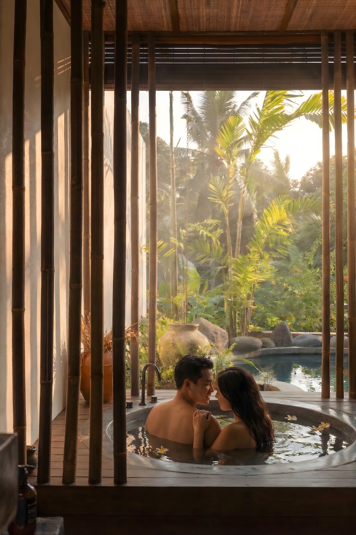 Escape to Embun Pagi Wooden Private Villa Ubud, a romantic 1-bedroom retreat in Tegalalang with stunning rice field views. Enjoy your private pool, relaxing bathtub, and a fully equipped kitchen with microwave, toaster & coffee maker. Perfect for honeymoons or peaceful getaways, surrounded by nature yet complete with fast Wi-Fi for your comfort.