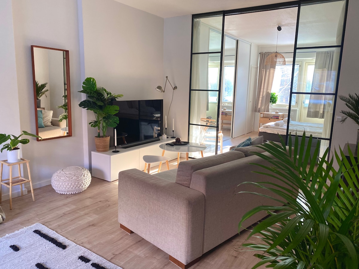 Cozy air-conditioned 74.5 m2 2BR apartment with sauna in Tammela Stadium. With elevator you can access parking hall, supermarket and restaurants. There is 1 free parking spot in the parking hall and public transport is just around the corner. City center is also nearby (1km). The apartment has high-quality materials and equipment, fast Wi-Fi and 65" TV with Netflix, as well as a large balcony with park view. This place is good for business travel or for relaxing break from everyday life.