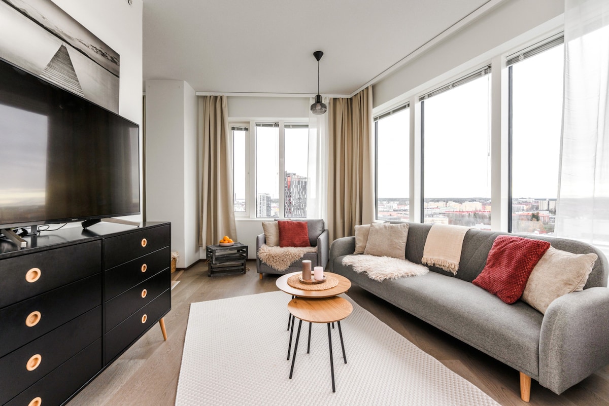 New cozy air-conditioned 74.5 m2 2BR apartment with sauna in Tammela Stadium. With elevator you can access parking hall, supermarket and restaurants. There is 1 free parking spot in the parking hall and public transport is just around the corner. City center is also nearby (1km). The apartment has high-quality materials and equipment, fast Wi-Fi and 65" TV with Netflix, as well as a large balcony with park view. This place is good for business travel or for relaxing break from everyday life.