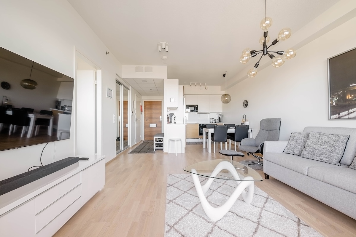 Cozy air-conditioned 74.5 m2 2BR apartment with sauna in Tammela Stadium. With elevator you can access parking hall, supermarket and restaurants. There is 1 free parking spot in the parking hall and public transport is just around the corner. City center is also nearby (1km). The apartment has high-quality materials and equipment, fast Wi-Fi and 65" TV with Netflix, as well as a large balcony with park view. This place is good for business travel or for relaxing break from everyday life.