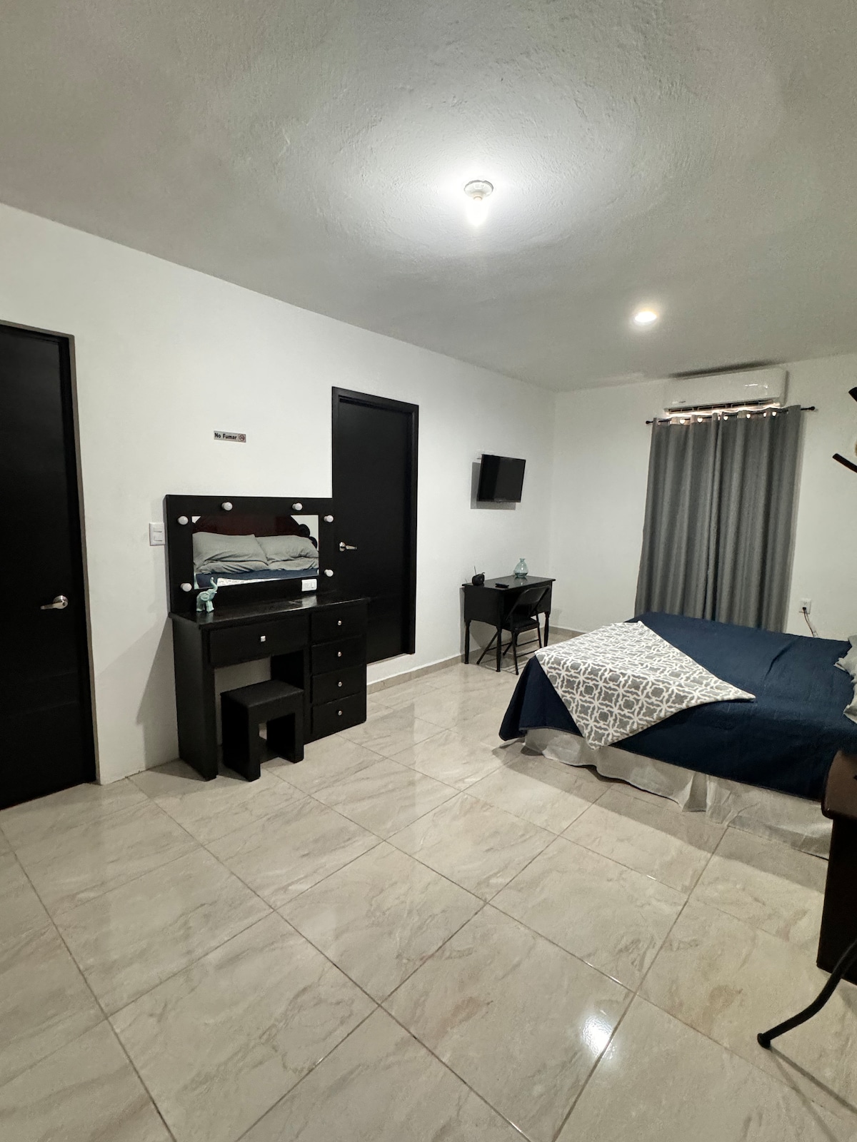 Habitación privada con entrada independiente a solo 2 min de Galerías Altama, hospitales y central de autobuses. Con aire acondicionado, baño privado y TV. ✅ Entrada independiente ❄️ Aire acondicionado 📺 TV en la habitación 🛏️ Cama matrimonial 🚿 Baño privado 📍 Ubicación exclusiva 🔒 Espacio privado 🧼 Limpieza garantizada ⚠️ Notas importantes: El equipo de cómputo no está incluido.