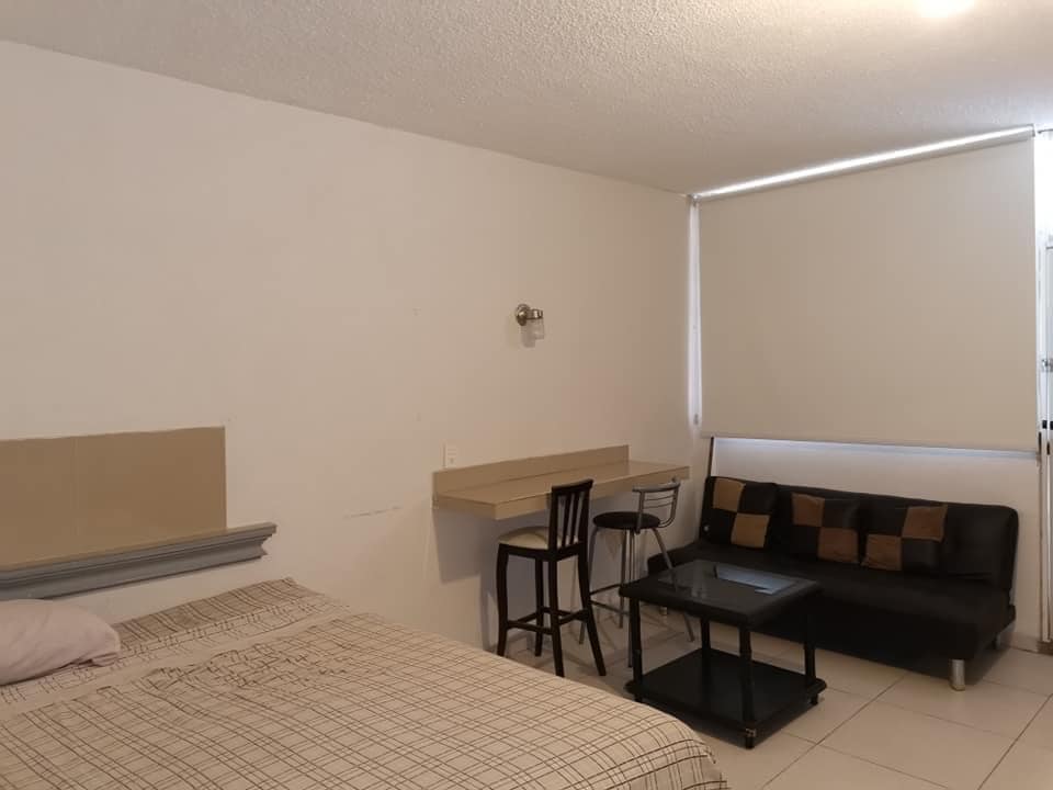 Este moderno lugar te ofrece muchos detalles encantadores, Equipado con Cama Queen Size y Cama Matrimonial, Gym, Alberca Semi Olímpica, Aire Acondicionado, TV y Wifi . Ideal para 4 personas Contamos en área de cafetería con cocineta equipada con mesas para trabajo o para comer, barra, cafetera para agua caliente, servicio de café, azúcar, crema, agua, horno eléctrico y refrigerador. (No está equipada con estufa).
