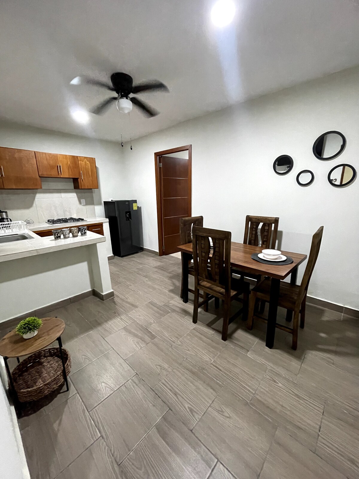 Depa en planta baja, limpio y cómodo, cerca de todo, verde, sin escalones, cochera privada techada. A 3 cuadras del Mall Altama, a 6 cuadras de la central de autobuses, a 6 cuadras de HEB. En carro: a 5 min. de la Laguna, a 10 min. de la Plaza de Armas, a 20 min. de Playa Miramar.