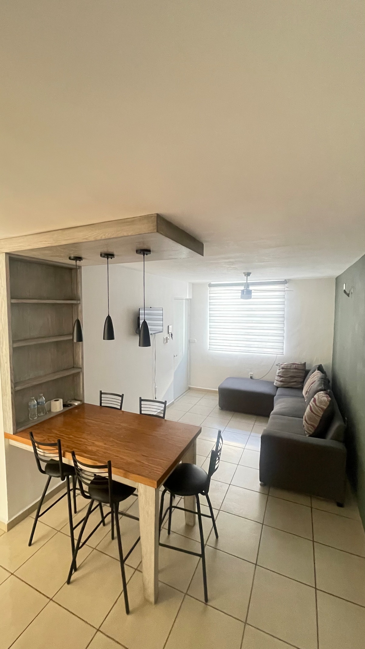 Moderno , excelente ubicación, nuevo. En segunda planta. El departamento tiene cocina con implementos como vasos, tazas, platos, cubiertos, sartenes, licuadora ,cafetera, así como aceite, sal y azúcar. Muy cercano, opciones donde desayunar , comer o cenar. A tres cuadras , área publica para ejercicio. TV32 smart TV , acceso plataformas. Canales TV abierta. No cuenta con estacionamiento, se pueden estacionar en las entre calles. Excelente ubicación, al margen de una de las principales avenidas.