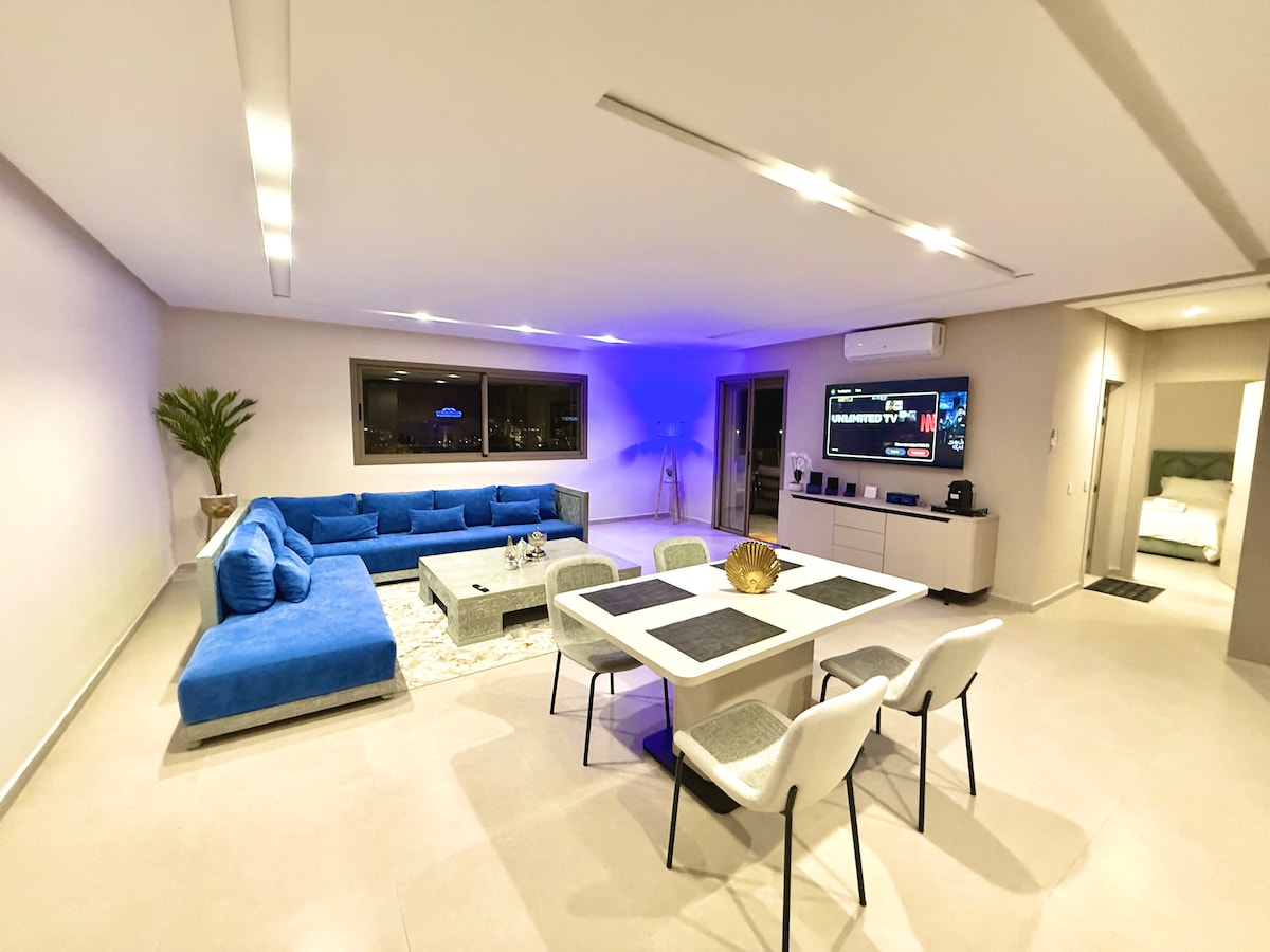 Experience luxury and comfort in this stunning duplex in Tamraght 🌴 Featuring a private rooftop with Jacuzzi, ocean views, and relaxing lounge area — perfect for sunsets or romantic evenings. Enjoy a modern living room, fully equipped kitchen, and cozy bedrooms. Located just minutes from the beach, cafes, and surf spots of Taghazout Bay. Ideal for couples, families, or friends seeking style and serenity ☀️