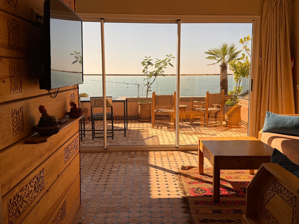 🌴 Ocean View Apartment – Steps from the Beach Bright, modern apartment with stunning ocean & golf views in Taghazout Bay. Perfect for families, couples, or surfers! Enjoy pools, secure residence, comfy living space, and fully equipped kitchen. Walk to cafes, beach, and local attractions. Book your dream seaside getaway now! 🌊☀️