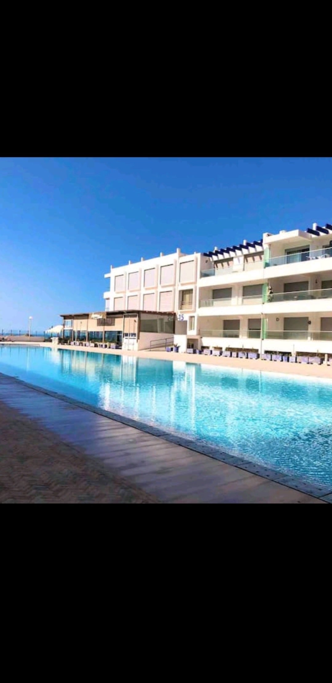 100% Relaxation: Magnificent apartment for couples with swimming pool located on the seafront, you will feel at home. Composed of a double bedroom, 1 shower room, an equipped kitchen, living room and dining room. Private and secure residence, several shops and markets. Ideal for relaxing to the sounds of the waves.... Residence secures therefore identity document for each traveler to present to security
