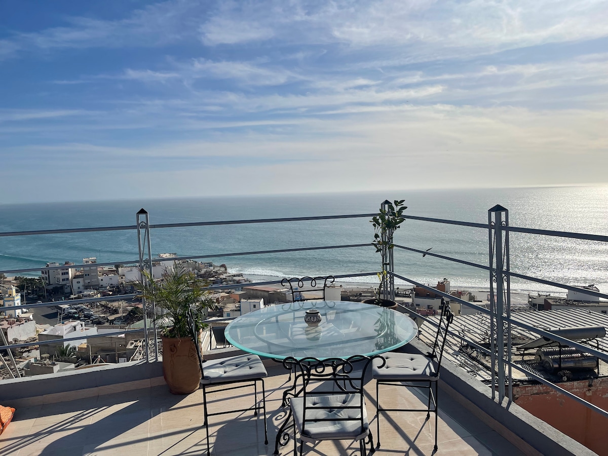 Step into luxury and tranquility in our suite, where modern comfort meets breathtaking views. This intimate retreat features a private bathroom for your relaxation, and a balcony offering a captivating panorama of both the ocean and mountains. With direct access to Tamraght's vibrant surf scene, this cozy haven offers not just a room but an immersive experience. Experience the warmth of our hospitality.