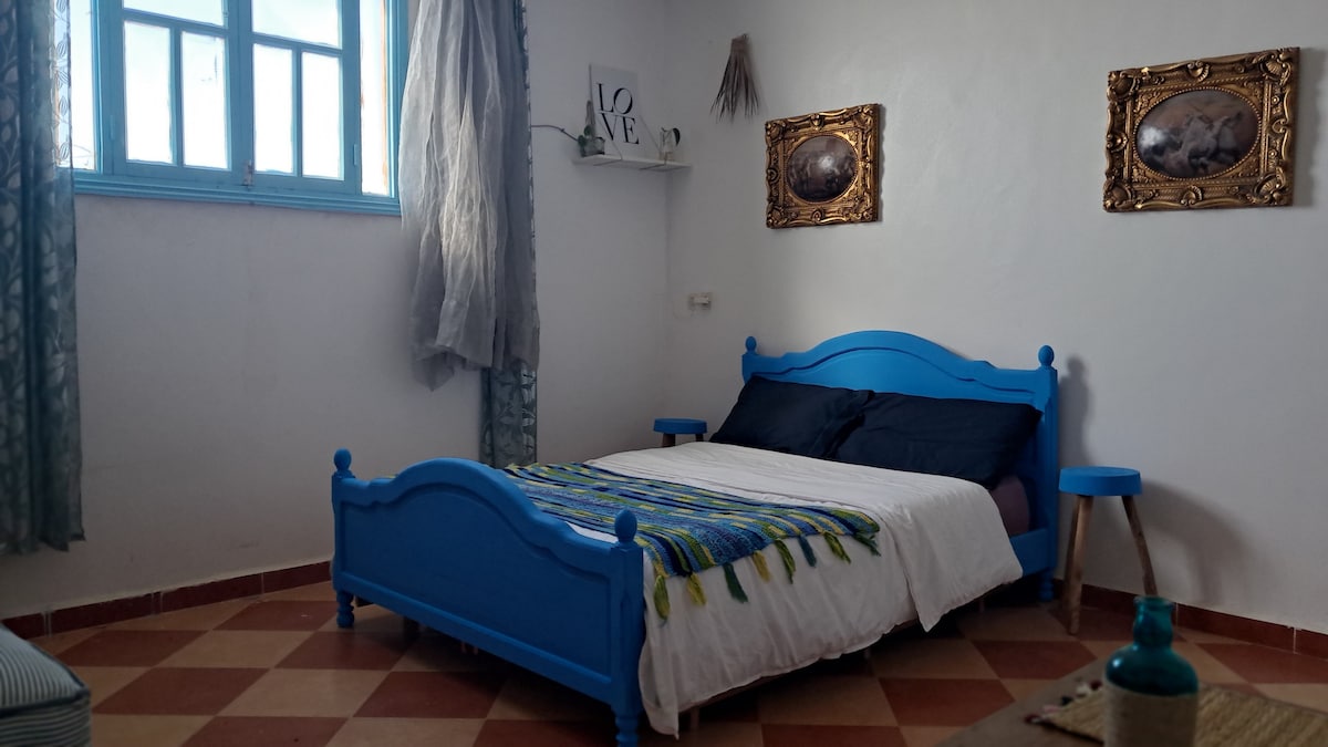 On a humble street perched atop the lovely surf town of Tamraght, you will find our house. Our rooms are light and breezy, with every detail handpicked, and lovingly put together. From our spacious rooftops, you have an expansive view of the sea, the whole charming town, and the mountains. A full 360 panorama. Perfect for yoga, wave checks, and lounge. 5-10 min walk to shops, restos, and 15 min to the beach. Other rooms: https://www.airbnb.com/h/dargeorgegreen