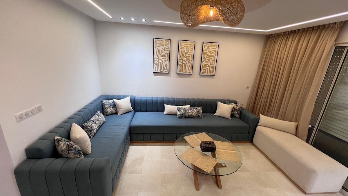 🌞 Appartement ensoleillé plein sud avec vue dégagée sur la piscine, situé au cœur de la Marina d’Agadir. Dans une résidence calme, sécurisée et très recherchée, avec piscines, jardins et accès direct à la plage. Idéal pour un séjour reposant en couple, en famille, entre amis ou pour un séjour prolongé. Restaurants gastronomiques, street-food salons de thé et commerces à pieds Sunny south-facing apartment with a pool view, located in the heart of Agadir Marina.