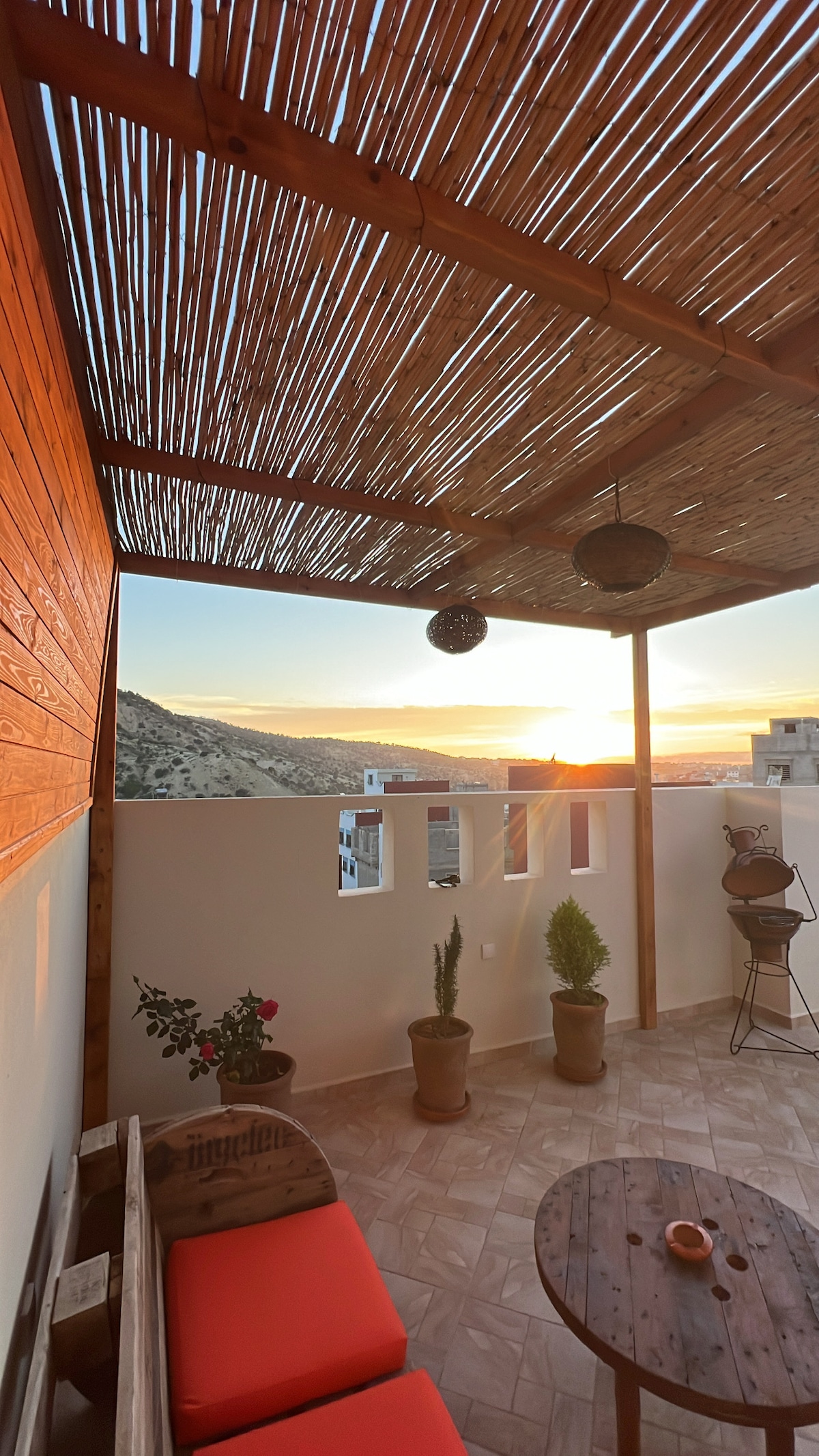 Cozy and peaceful apartment just steps from Tamraght beach. Enjoy a panoramic terrace overlooking the sea, perfect for relaxing mornings or sunset evenings. Ideal for surfers, couples, and small families, the apartment offers privacy, fast Wi-Fi, a fully equipped kitchen, and a comfortable workspace. Explore vibrant nearby cafés, local markets, and famous surf spots. Your perfect home for sun, waves, and tranquility.