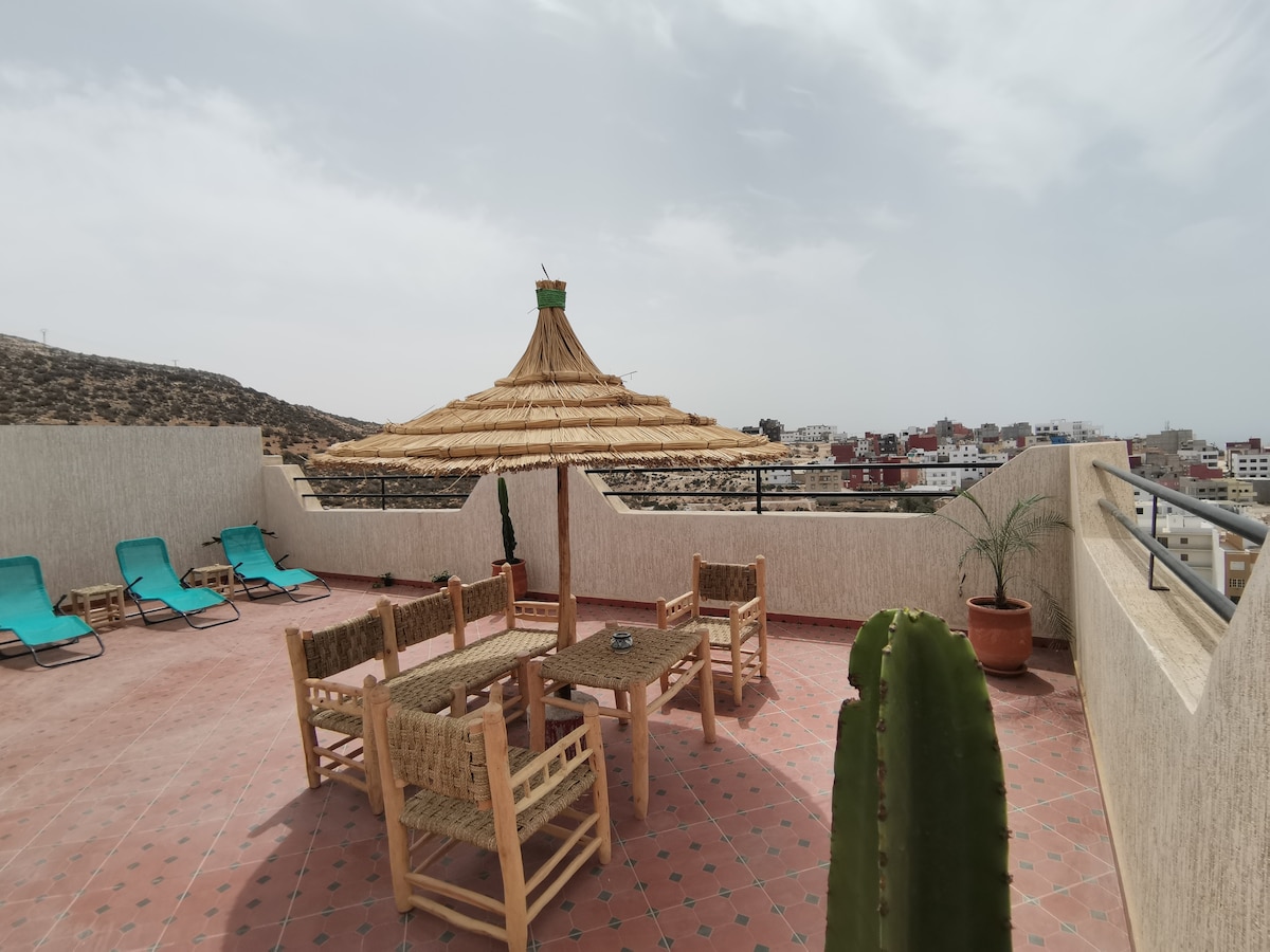 Nous sommes très ravis de vous offrir un appartement qui représente notre culture berbère avec un peu de modernité est une sensation de mille et une nuit Profitez d'un séjour inoubliable dans notre appartement très accueillante et notre superbe Terasse avec une excellente vu à l’océan spécialement sur le spot de surf banana point est au montagnes de Tamraght.
