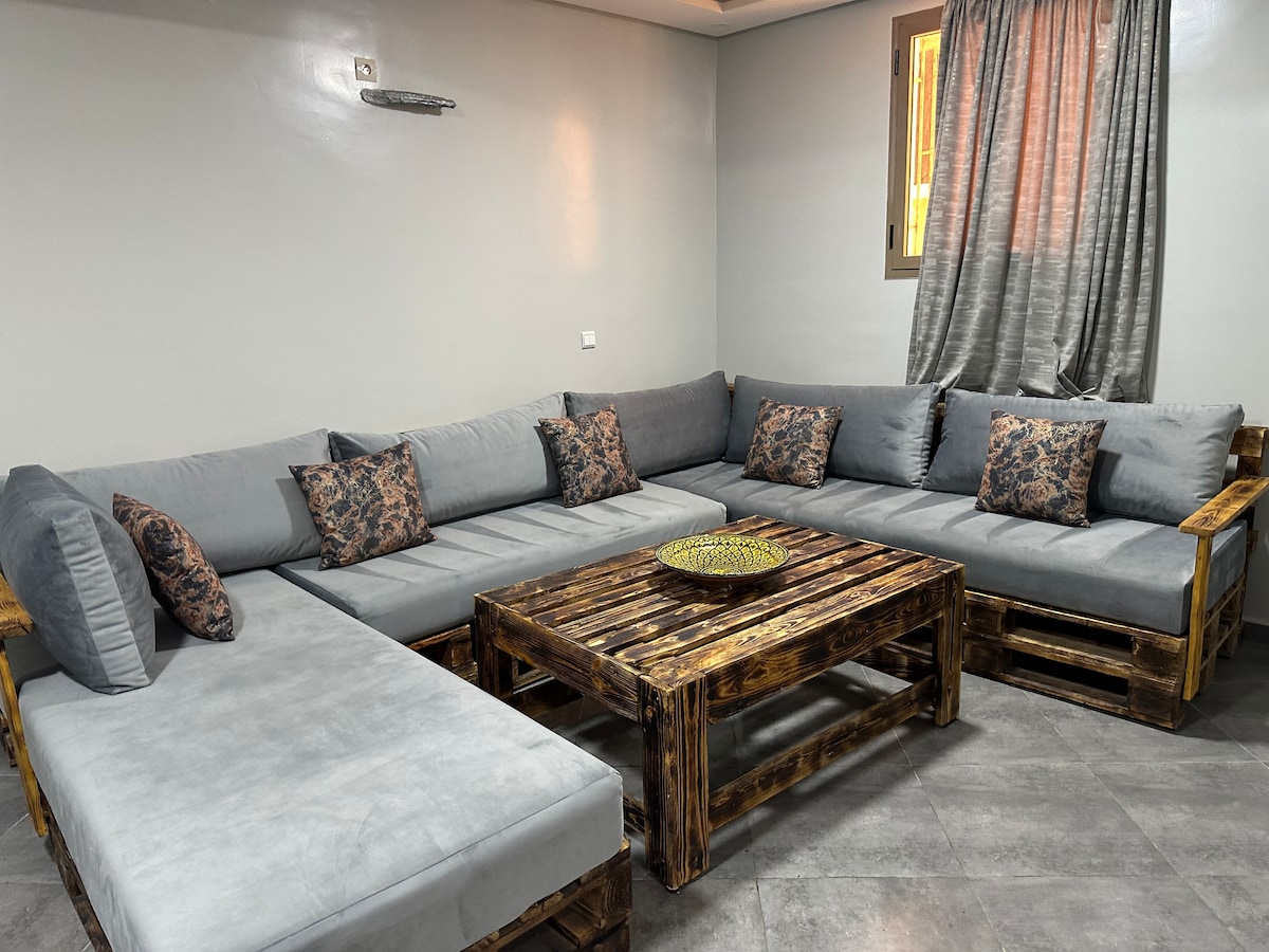 Welcome to our six-apartment building in the village of Tamraght (10 min from Agadir), 5 min from Imourane beach (on foot). Our building is perfectly situated to enjoy the waves of the Atlantic Ocean, as well as a calm and peaceful living environment. You can also enjoy the shared terrace with its panoramic view of the village and the ocean.