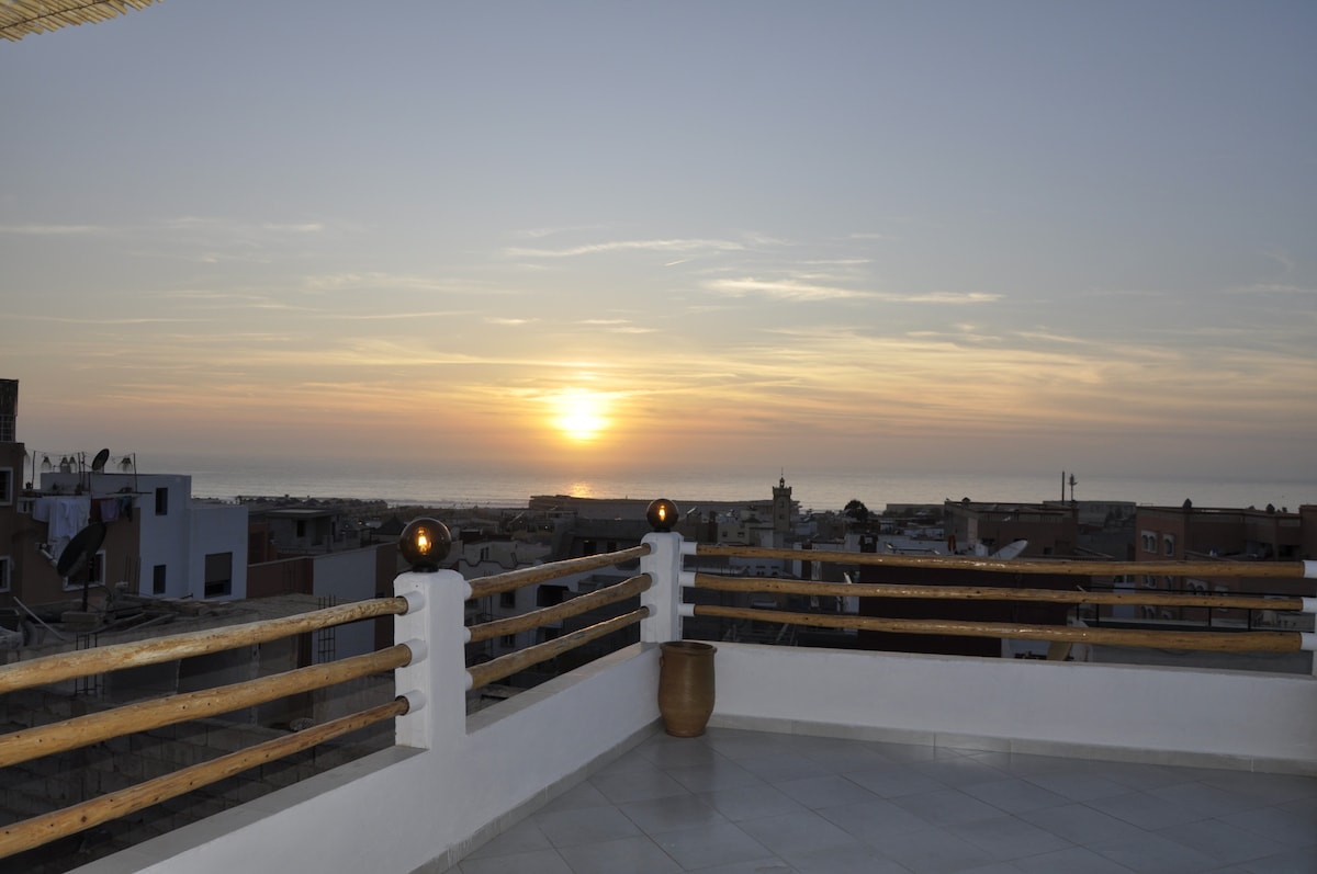 C'est le seul appartement dont le balcon de 17m2 est construit au dessus du chemin qui longe la plage, offrant une vue exceptionnelle sur les vagues, le village, les pêcheurs, les surfeurs. Très confortable, décoré et entretenu avec soin pour un séjour exceptionnel au dessus de l'océan, proche des nombreux cafés et restaurants longeant la plage et à 2 pas des écoles de surf, au coeur de ce village berbère convivial mêlant pêcheurs, commerçants, surfeurs du monde entier...et quelques touristes.