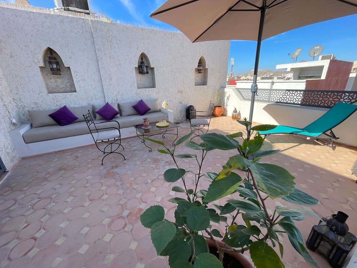 HIGHLIGHTS: ★ 3-minute walk to the beach ★ Ocean & Atlas Mountain rooftop view ★ Fast fiber Wi-Fi (200 Mbps) & remote work desk ★ Popcorn and Netflix with 55" 4K TV ★ Free, secure parking right in front of the villa ★ Garden & panoramic view rooftop with sun loungers ★ Minutes from Taghazout & 30mn from Agadir Wake up with your coffee facing the Atlantic Ocean, enjoy rooftop sunbathing, and unwind in a calm, stylish space that offers exceptional value for the location and comfort provided ✨