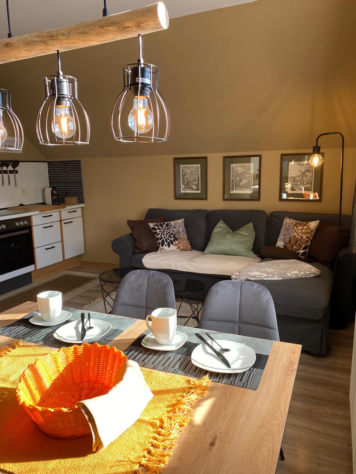 High quality renovated 120sqm apartment with modern dream kitchen, rustic living room with giant sofa and home cinema system (Sky, Netflix, etc.), cozy tiled stove, large bathroom (steam shower, bathtub, double vanity, washer dryer, drying rods) & a large cloakroom. 3x double room (2 persons each) Optional: 1x sofa bed in the living room (2 people) In addition, associated ski cellar, wide outdoor area with gardens and farm animals and associated parking spaces!