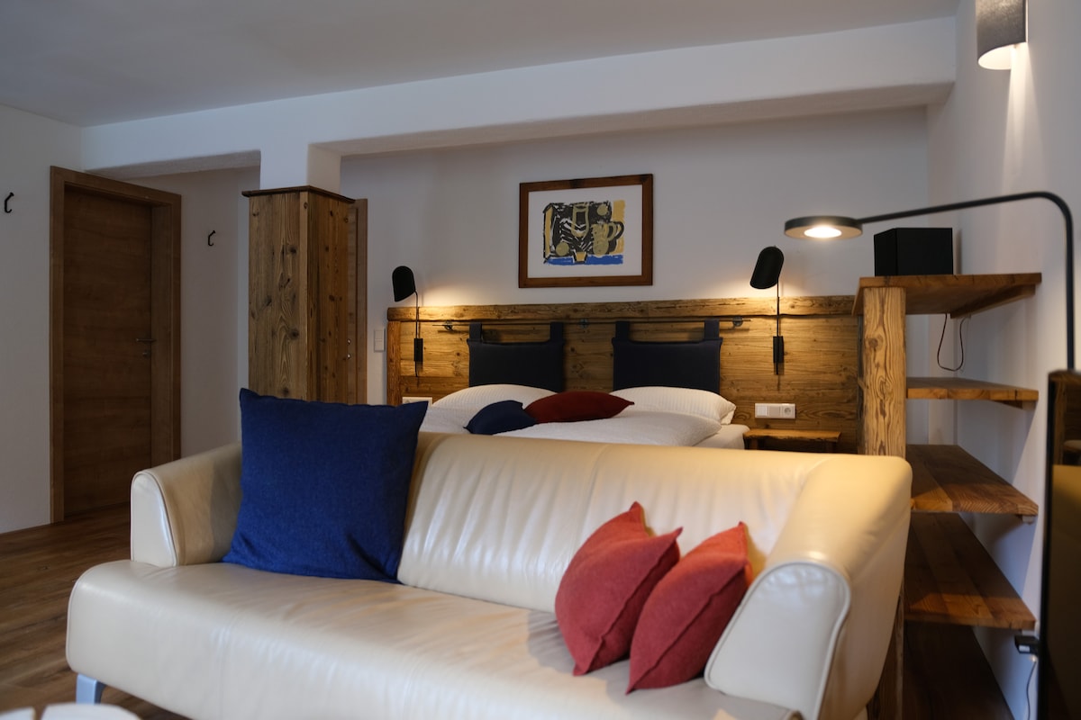 Unser Gästehaus "Burglodge Fischerkeusche" für bis zu 35 Gäste: Das großzügige Deluxe Appartement Dietrich | 70m² | bietet Ihnen viel Platz um Ihren Urlaub zu genießen. Beginnend mit einem großen Eingangsbereich ist der offene Raum mit vollausgestatteter Küche, Ess- und Wohnbereich eine Augenweide. Die beiden separaten Schlafzimmern mit Doppelbetten (eines davon trennbar), sind hell und gemütlich.