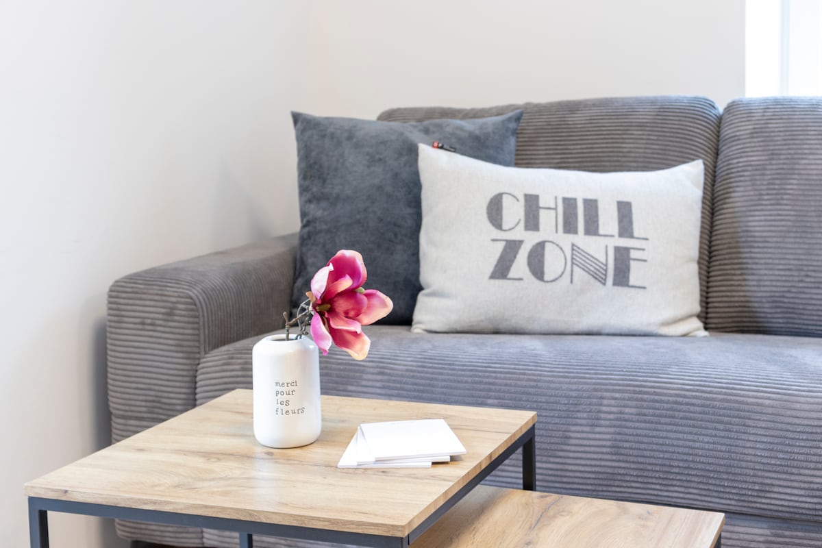 The 100 m² (1,076 sq ft) Deluxe Apartment accommodates up to 6 people. It features three separate bedrooms with Kig Size beds (180x200). One of them has a freestanding bathtub, shower, toilet and bidet, while another has a shower and sink. Additionally, there is a separate toilet with a small sink. The living room is equipped with an elegant leather couch, a dining area, and a kitchen. The apartment has a large, wrap-around balcony. 2 TVs in the living room and in the 3rd bedroom.