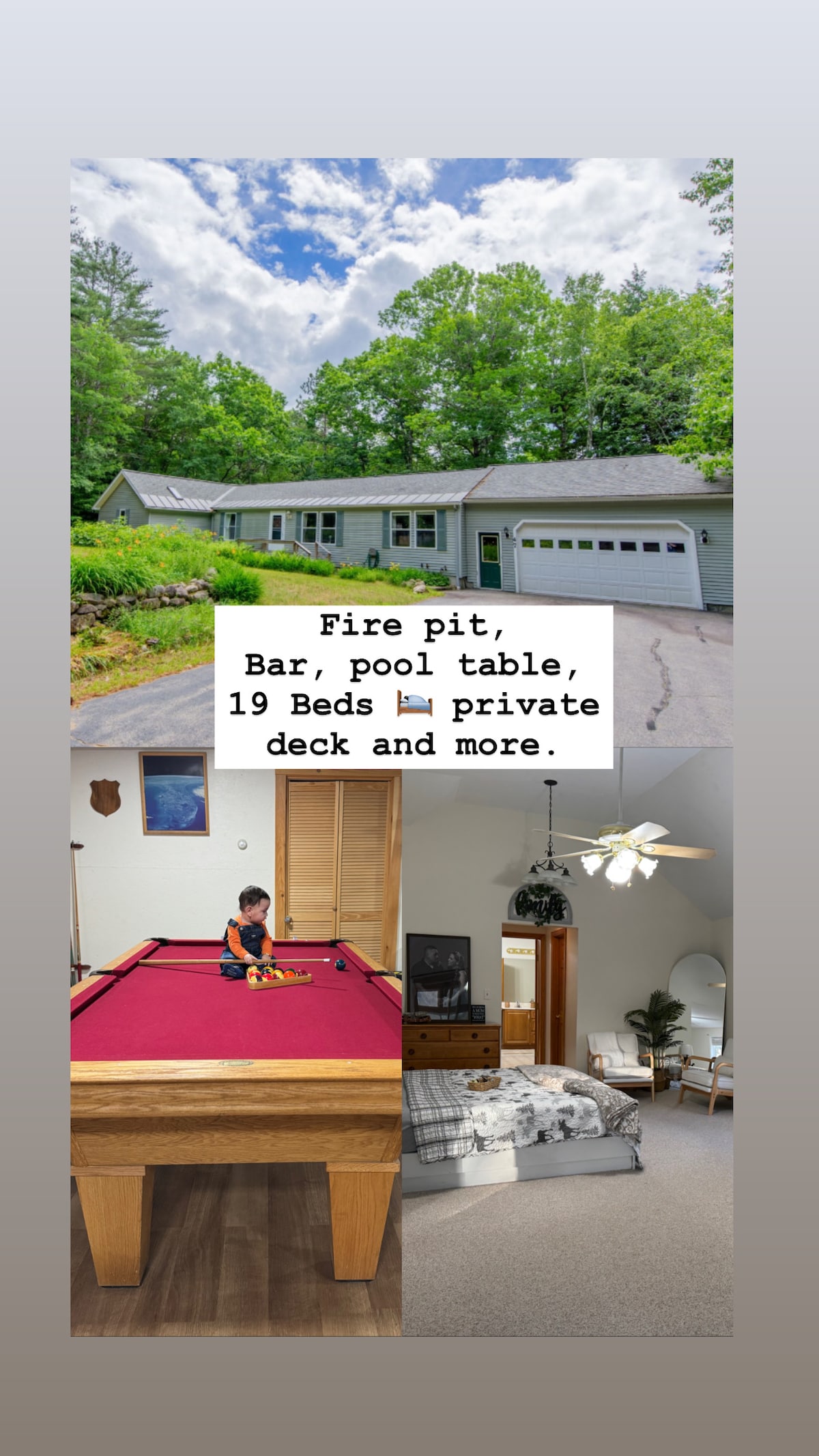 Wake up to mountain views, sip coffee on the wrap-around deck, and breathe in the fresh Maine air. At Mountain View Lodge, every detail is designed for you to relax and recharge. Spend your days skiing at Pleasant Mountain, hiking local trails, or floating down the Saco River - and your evenings gathered around the firepit or curled up by the woodstove. With three bedrooms, two baths, and a fully equipped kitchen, there's space for families, friends, and couples to enjoy all four seasons.