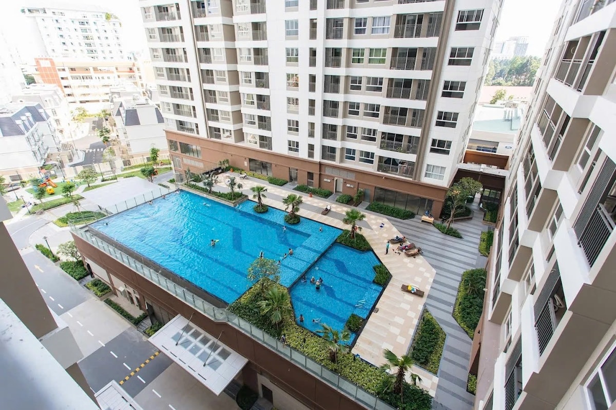 LOOK NO FURTHER – YOU’VE FOUND THE PERFECT PLACE FOR YOUR HOLIDAY! Living like Saigonese in the Oasis of the city, luxurious resident with Elevator ,Pool, 24/7 security !! Fully furnished, designed and owned by interior designer. Easy access to City center (2km ) and Tan Son Nhat airport (5 mins ) 24/7 convenient store ( Mini Stop ) in the building . Cafe, shops, parks,play ground, supermarket around Smoke detector and sprinkler are in each unit and in all common areas of the building ^_^