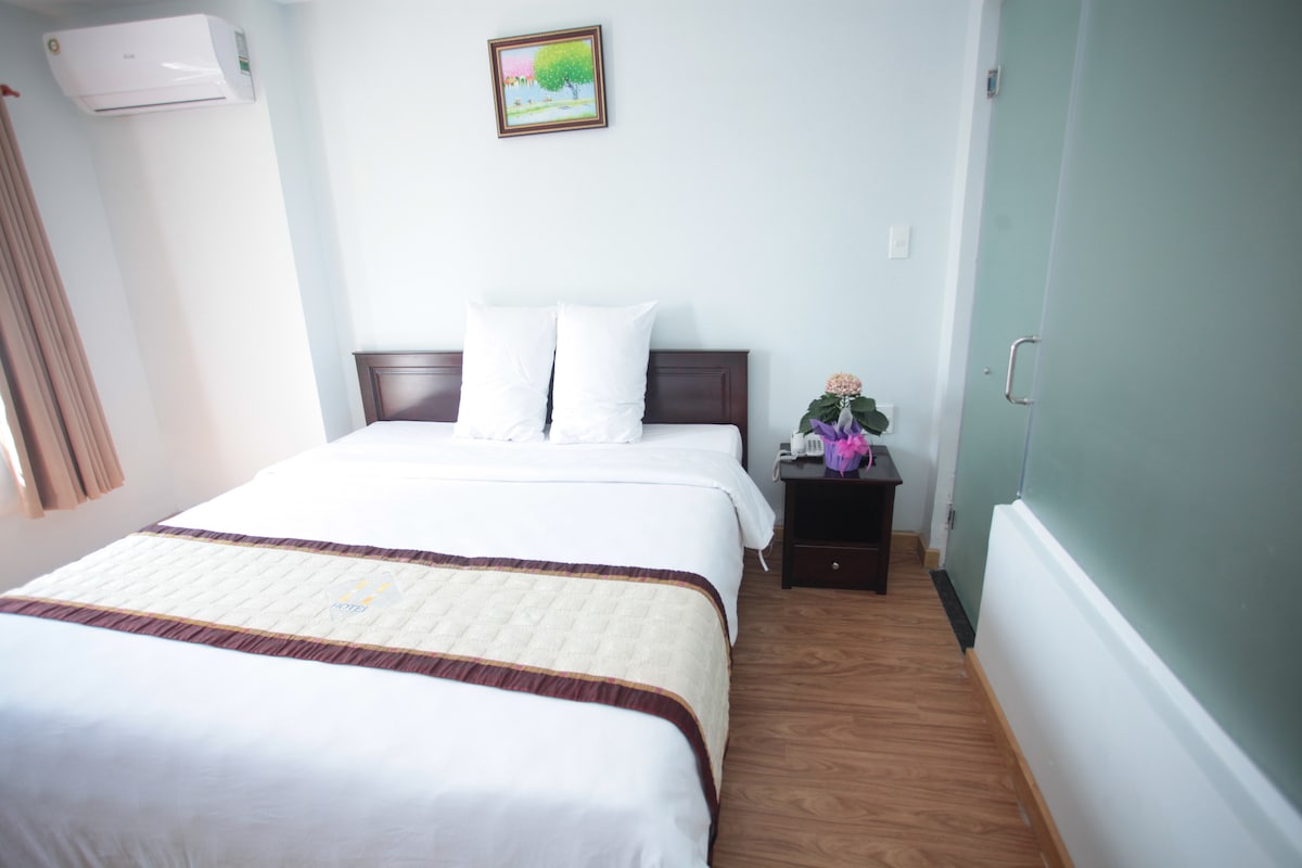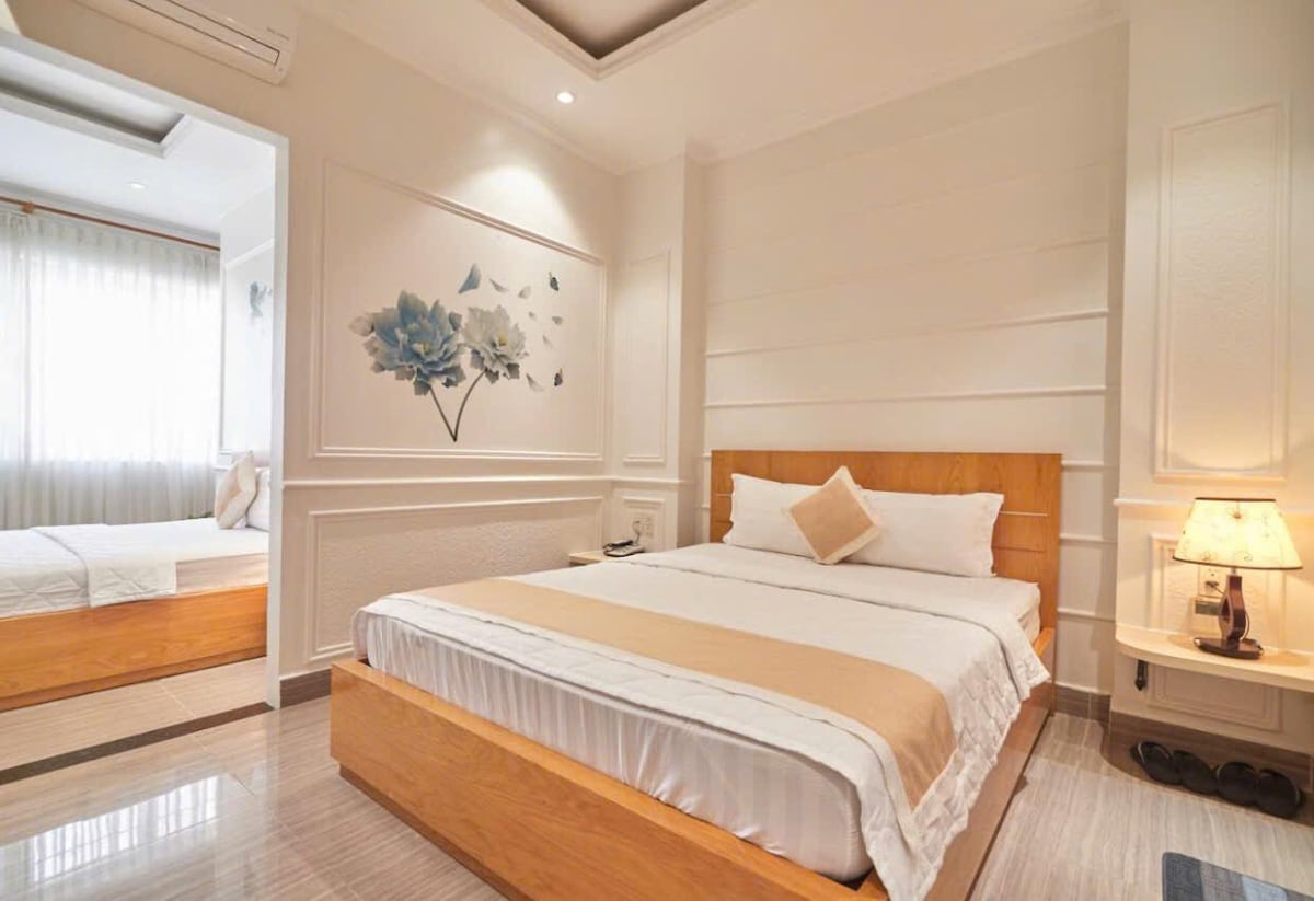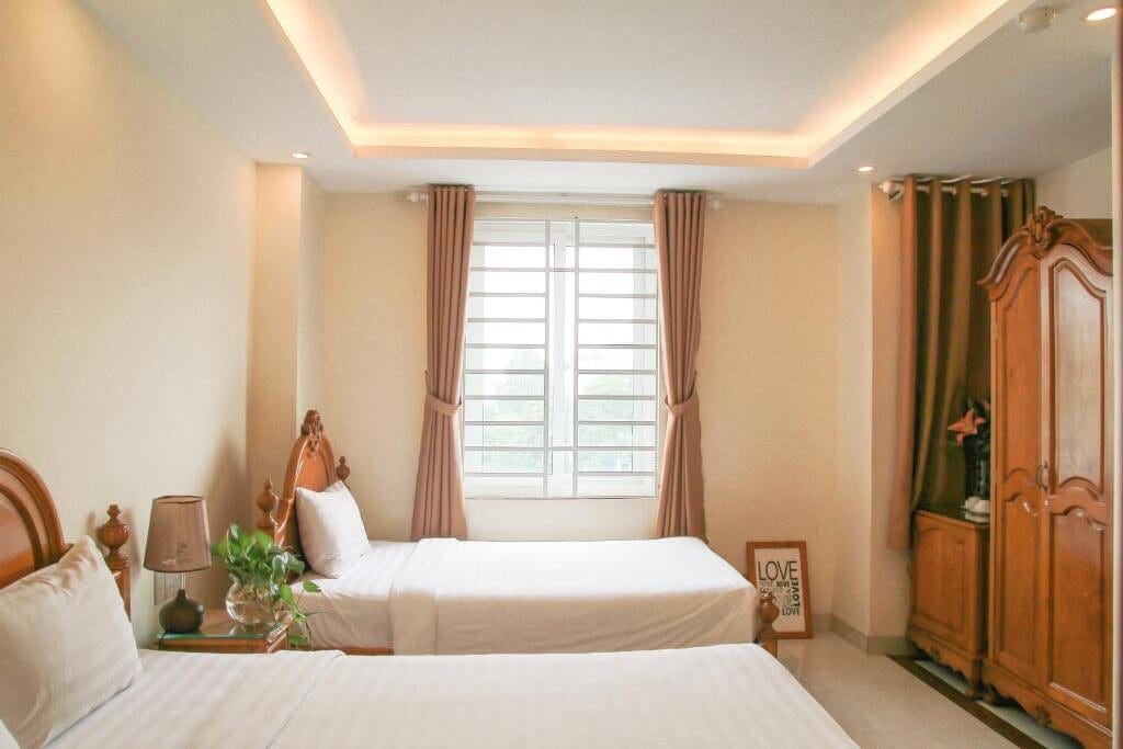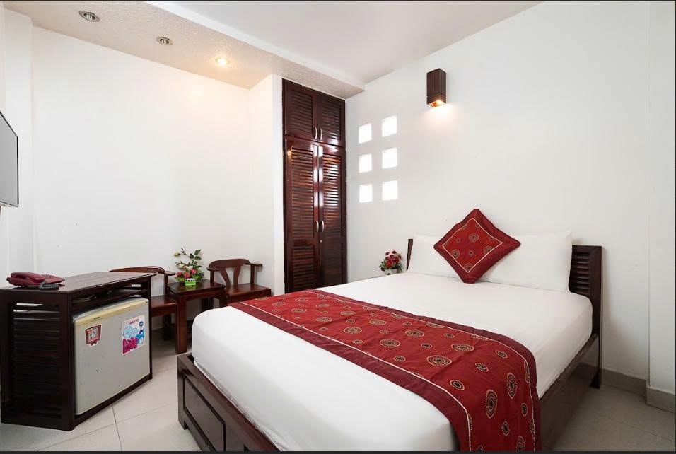 An Indochine-style hotel room located in a boutique hotel near Tan Son Nhat airport offers additional free amenities such as the laundry room, Gym, Sauna, hot-cold purified water, and motorbike parking. With an elevator ride away, the restaurant/cafe/bar offers meeting spots, working space and chill-laxing atmosphere.