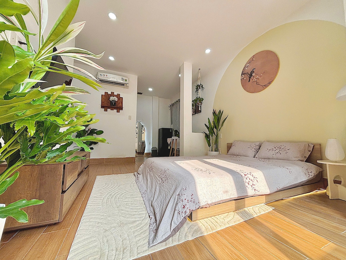🌿🌺 Bright Duplex with Bathtub & Private Garden 🌿Your quiet oasis in the heart of HCM city! This rare two-levels apartment features high ceiling, a private backyard garden🪴, bathtub, and a fully equipped kitchen. 😊 Enjoy spacious bedroom with a plush king-size bed, cozy living room, home comforts in a peaceful green setting. ☕Tucked in a local friendly neighborhood, we're close to marts, cafes, eateries, bus stops and a short walk to Dam Sen Park. Check my guidebook for interesting spot!