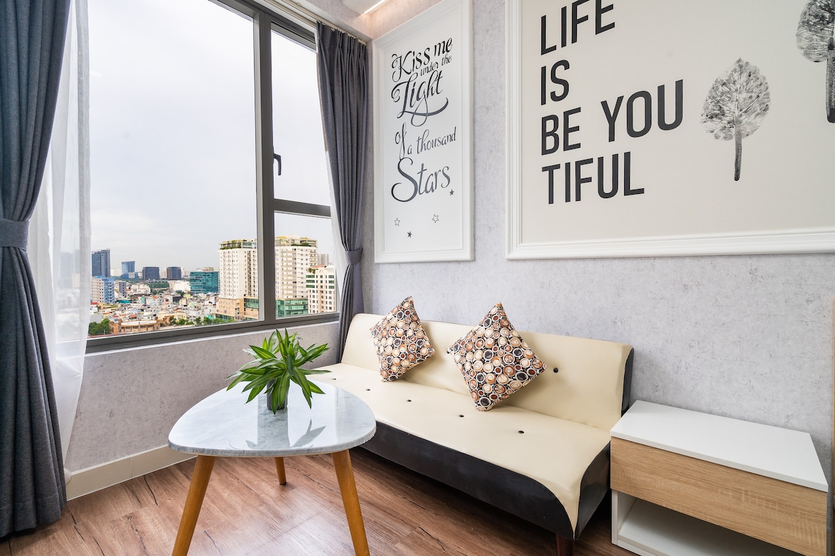 Keep it simple at this peaceful and centrally-loWelcome to our modern and stylish apartment in Tan Dinh, District 1, offers: - Modern and Stylish: New furniture with beautiful minimalist decoration. - Prime Location: Close to top sightseeing spots such as Pink Church, War Remnants Museum, Saigon Notre-Dame Basilica, Saigon Central Post Office, and Reunification Palace. - Convenience: Near parks, dining, and entertainment options. Perfect for business and leisure travelers.cated place.