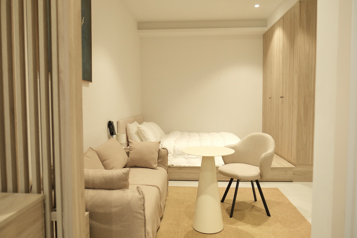 An Indochine-style hotel room located in a boutique hotel near Tan Son Nhat airport offers additional free amenities such as the laundry room, Gym, Sauna, hot-cold purified water, and motorbike parking. With an elevator ride away, the restaurant/cafe/bar offers meeting spots, working space and chill-laxing atmosphere.