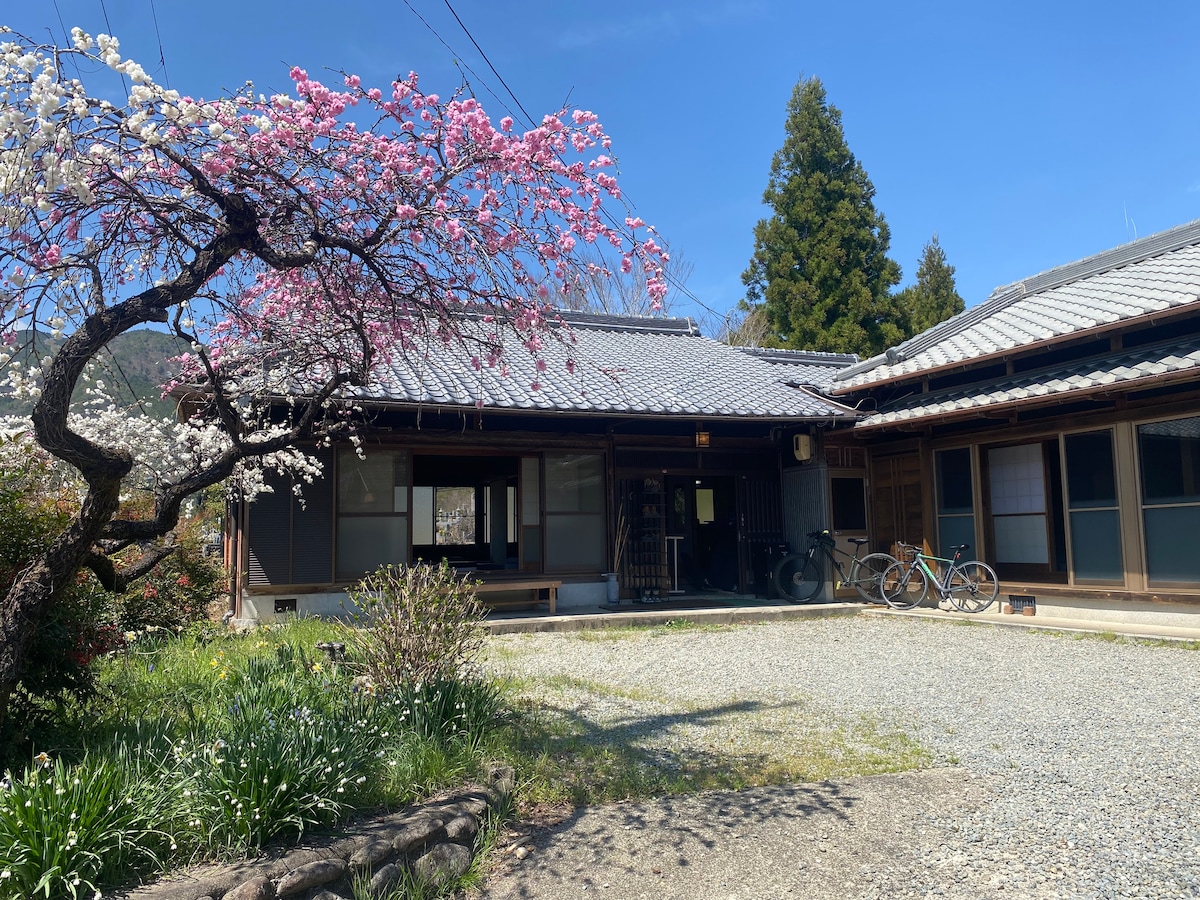 This house was built 120 years ago and stayed by a lot of people who have plan to go to Koya-san. The house is in front of the river and you can take a look. It will make relaxed. We can do tea ceremony, if you want. We have 2 toilet and 1 bath room with big bath tab made by a Japanese special wood, Hinoki. There is a 24h super market, Okuwa near the house.(5 min away by a car) And high rank Japanese beef restaurant(2 min by a car) You can enjoy Yakiniku.