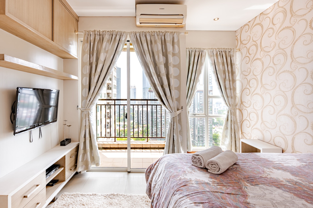 Stylish, comfortable & clean studio with 2 beds (not a 2 bedroom apartment), with beautiful view in Cosmo Terrace, above Thamrin City (shopping centre specialising in batik), right in the heart of Jakarta business district. 10-15mins walking to malls (Grand Indonesia & Plaza Indonesia). Plenty of cafes, restaurant & amenities nearby. Easy access to transportation. Truly a home away from home.