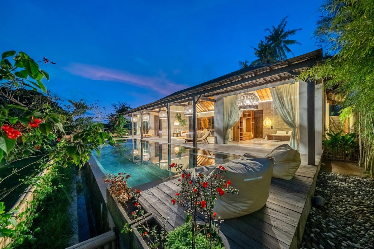 Welcome to Villa Dwipa ☀️ A place where you can indulge yourself in the beauty and luxury of a completely private Bamboo Villa and all it’s facilities surrounded by peaceful nature 🍃 From a dive in the private pool, watching a movie on the drop down cinema screen and having a neighbor-less party in the living room to spending peaceful quality time, cozily unwinding on the balcony and everything in between, whether you're friends or lovers, we guarantee you a good time 😊