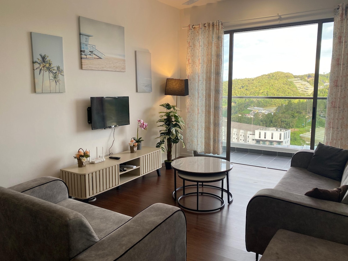 Welcome to our brand new cozy apartment with 3 bedrooms and 2 bathrooms. Each room featured a premium hotel bed with luxurious linens, a modern dining area & kitchenette. It can comfortably accommodate up to 6 guests. Our location is an unique place to stay with hassle free from traffic jam due to peak season. It is fit for small family, couples or friends who looking forward to rest and breath of fresh air. Our unit is strategically located opposite of Tea Plantation, it is just 1 mins walk.