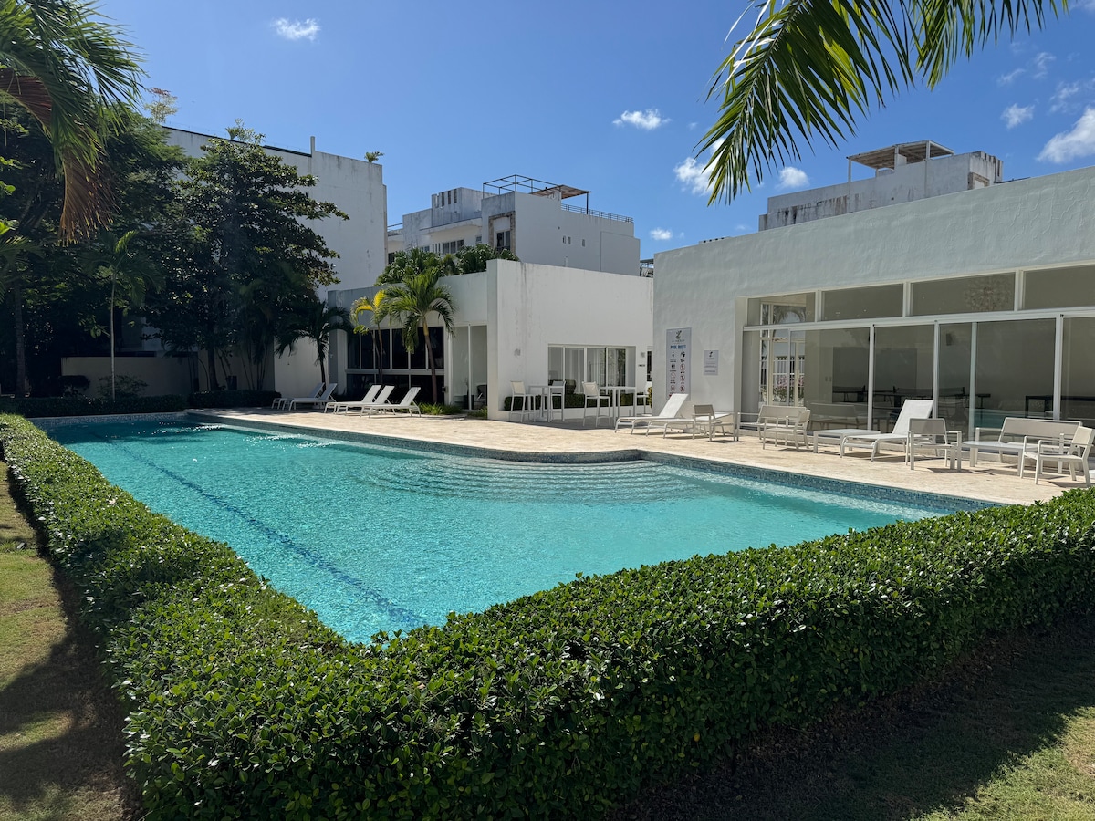 Experience peace and serenity at Canamar, Capcana. Walk into our sunlit and airconditioned condo, with a pool view and fully equipped for your next stay. This condo is mostly booked by families and couples looking for a place to (READ MORE BELOW) disconnect and relax. ✔ 8 minutes from PUJ Airport, ✔ 5 minutes BlueMall, ✔ 15 minutes Scape Park, ✔ 5 minutes Cap Cana Marina and exclusive restaurants, ✔ 10 Minutes from the private beach Playa Juanillo, and more.