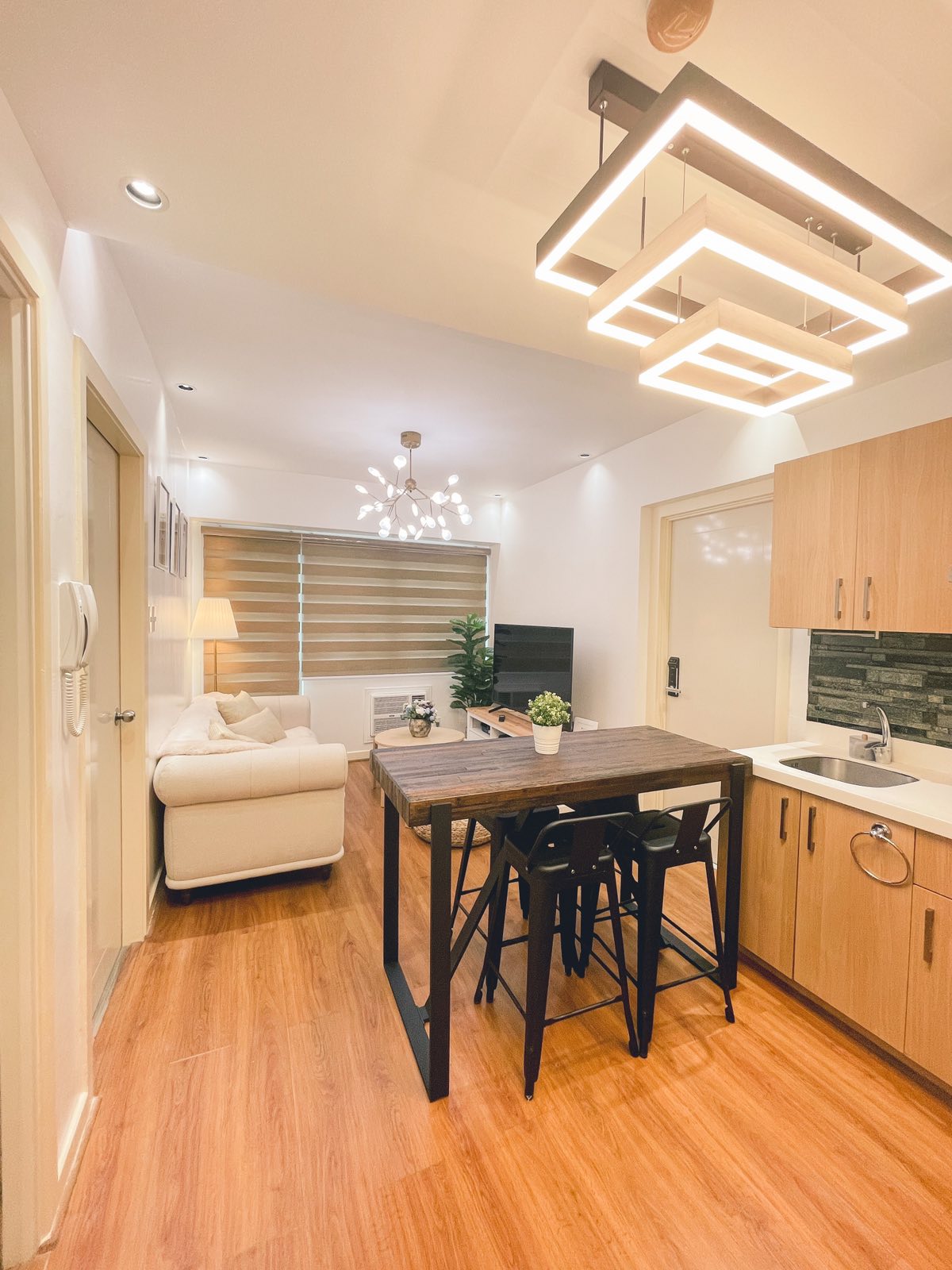 Discover our spacious and bright 1BR end unit in newly built Tower 4, Fern Residences. Designed with you in mind, our luxurious boutique-hotel style unit features a fully-equipped kitchen, hotel quality mattress and beddings, convertible coffee to dining table, washing machine and fast WiFi. It is ideal for short and extended stay travellers and for those who just want to have a relaxing staycation.