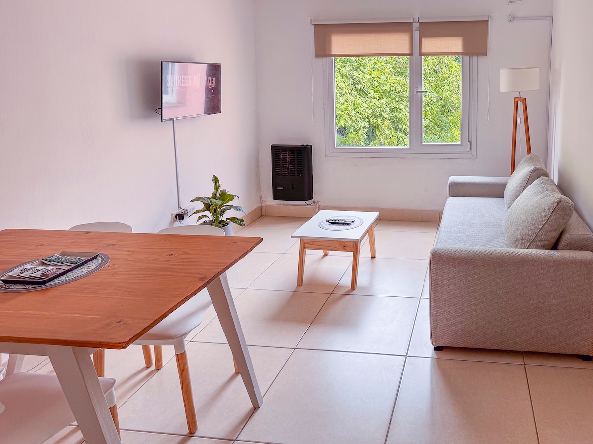 Moderno departamento para 4 personas Disfruta de una estancia única en este hermoso departamento con balcón, rodeado de un entorno natural, con zonas comerciales. A minutos del centro de la cuidad. Con dos habitaciones matrimoniales, cocina completa, baño moderno y un luminoso living. Todo está pensado para tu comodidad. Perfecto para relajarte o explorar la cuidad. ¡La opción ideal para tu próxima visita!