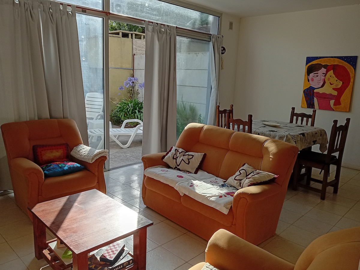 Departamento de 50m2 en dúplex, excelente ubicación(cerca del parque independencia, otros puntos turísticos de importancia y el centro de la ciudad), todos los servicios, incluido wi-fi, lugar para guardar autos, parrilla, cocina totalmente equipada, un dormitorio con cama de 2 plazas, y un futón que se transforma en cama de 2 plazas en la planta baja(cualquiera puede ser reemplazado por camas de 1 plaza, o cuchetas).