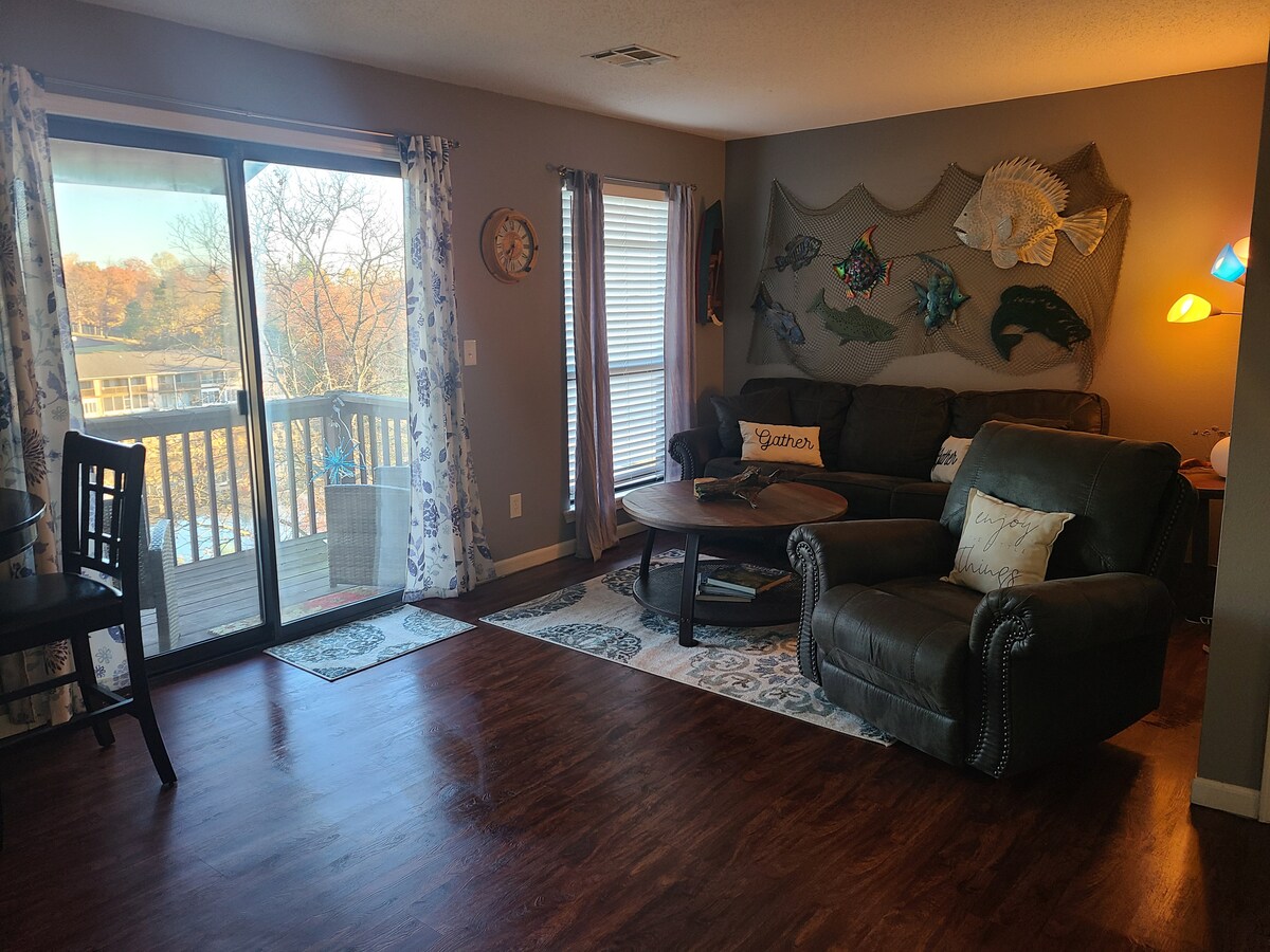 The Water's Edge is located at Edgewater Beach Resort in Forsyth, MO. Enjoy breathtaking views of Lake Taneycomo while relaxing on the private back patio. You won't need to pack much with all of the amenities we provide in the fully stocked kitchen and bathrooms. Resort amenities include a fire pit, outdoor pool, playground, laundry room, and fish cleaning station. Boats and boat slips are also available to rent. We are located next to Empire Park and just 16 miles from the Branson Landing.