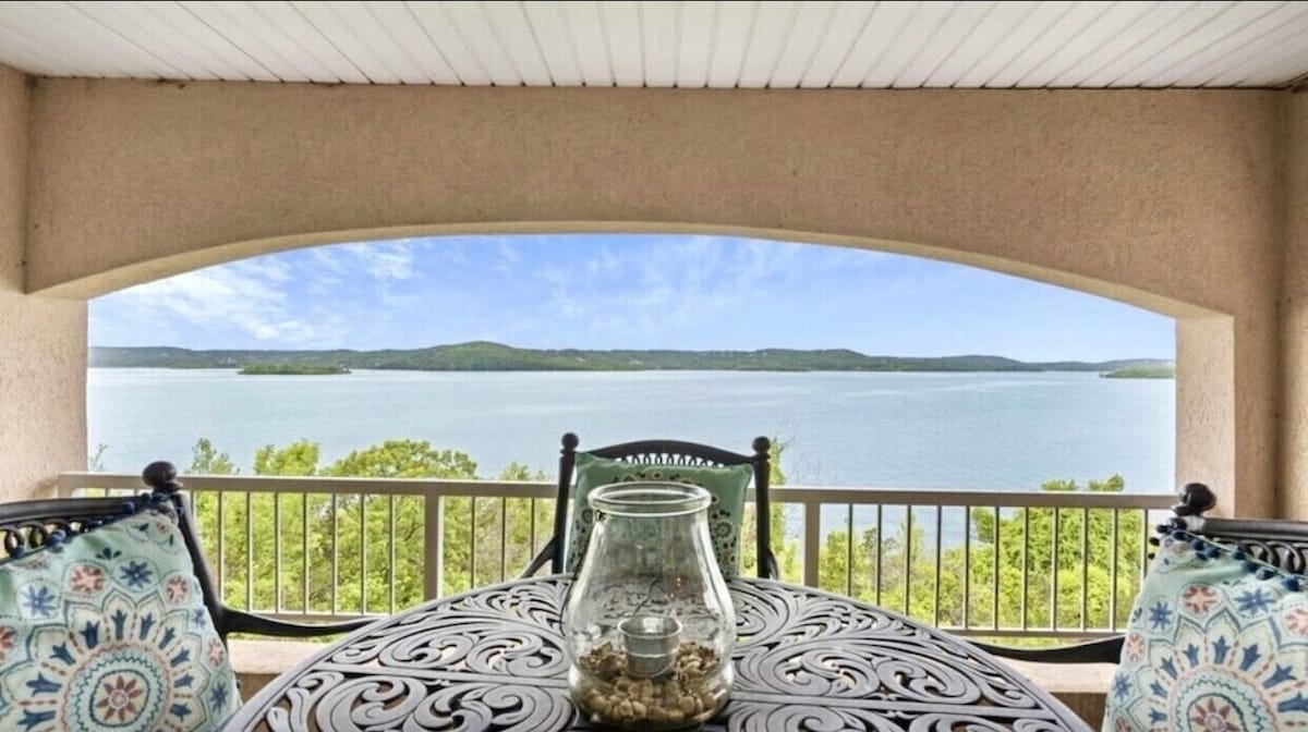 LAFEFRONT CONDO....with SPECTACTULAR Sunset Views! Gravel Swim Beach & Shoreline Steps from the Condo, Tastefully Remodeled, Saltwater Pool. Table Rock 2 Bedroom, 2 Bath Condo-Just a Short Drive to All the Branson Fun -Luxury Master Suite -Keurig Coffee, Coffee Pot, French Press, Coffee, Creamer & Sweetener Variety -Spacious Balcony with Comfortable Seating -Washer/Dryer -Sparkling Saltwater Pool -Gravel swim beach right outside the condos -Marina, Courtesy Boat Ramp & Dock