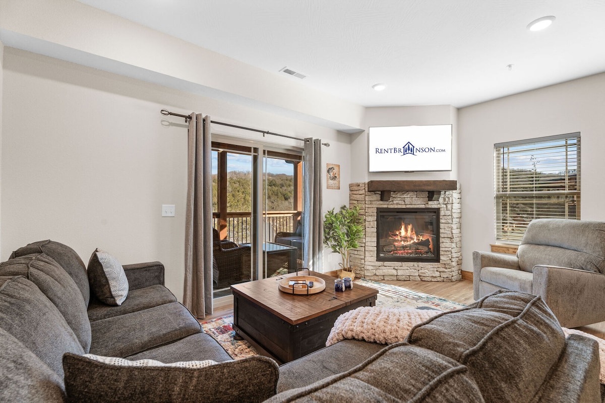 You will love this brand new 3-bedroom, 3-bathroom Branson vacation condo rental. Centrally located, nestled within the Thousand Hills community, relax in your walk-in condo and kick back on the patio, soak in the hot tub, or splash in the community pool. Relax next to the fireplace and pop on your film or have a family game night! Enjoy Silver Dollar City, the Dixie Stampede, & other hot Branson attractions. Your family will be close to everything when you stay at this centrally located condo.