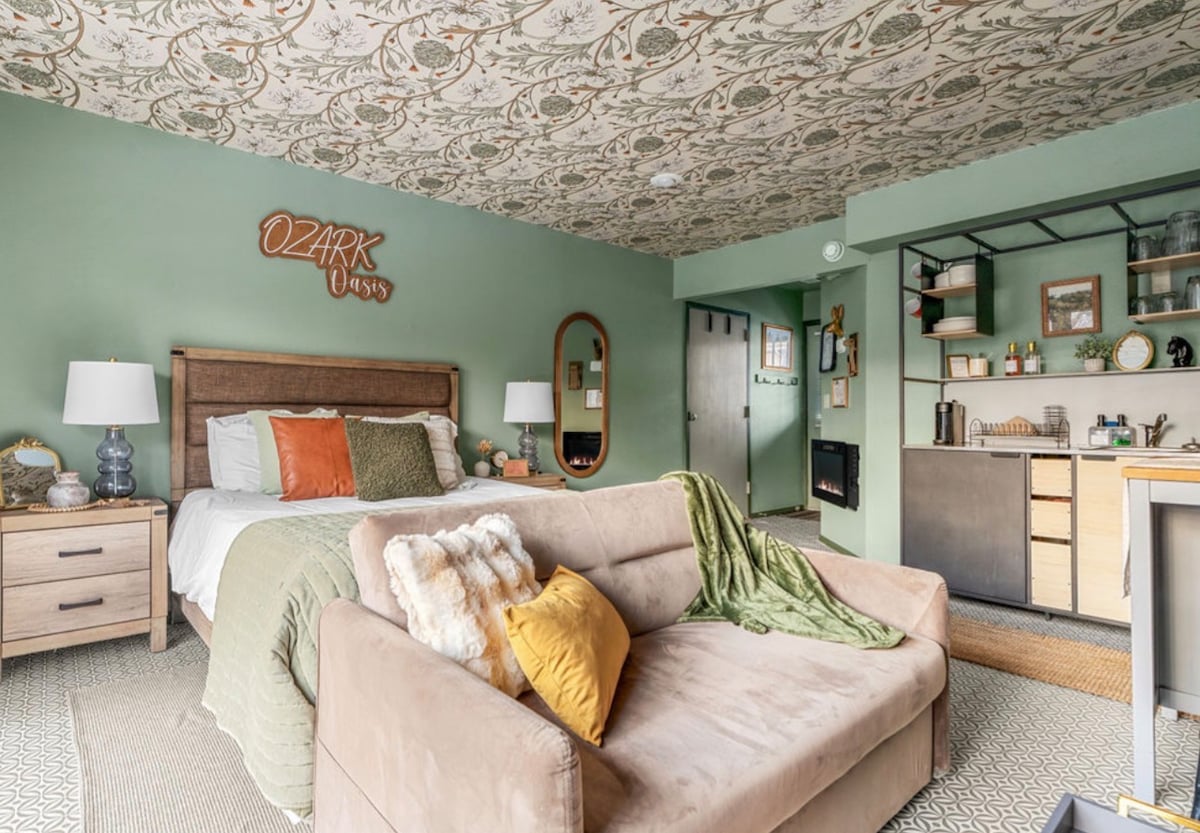 This "COZY" studio cabin is located around the corner from Lake Taneycomo! With beautiful views of the Ozark trees, the lake, and more. Step outside morning or night and watch the local deer. Within walking distance, you will have La Pizza Cellar, White River Coffee house, and fishing on Lake Taneycomo. Only 15-20 minutes from Branson STUDIO layout. New flooring 2023! *We are pet friendly upon APPROVAL & pet fees. Service animals require documentation, or our pet fees will apply!
